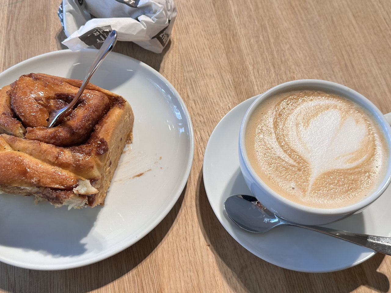 따뜻한 라떼와 시나몬 롤 하나를 주문해서 쉬면서 먹고 있다. 가장 큰 스트레스였던 호스텔이 해결되자 더 여유롭고 더 느긋하게 이 도시를 즐길 수 있는 것 같다. 사실 슈베린이라는 도시에 가려고 했는데 생각보다 시간이 촉박해서 함부르크만 즐기려고 한다. 카페 조금 더 앉아 있다가 시내 구경도 하고 돌아다니려고 한다.