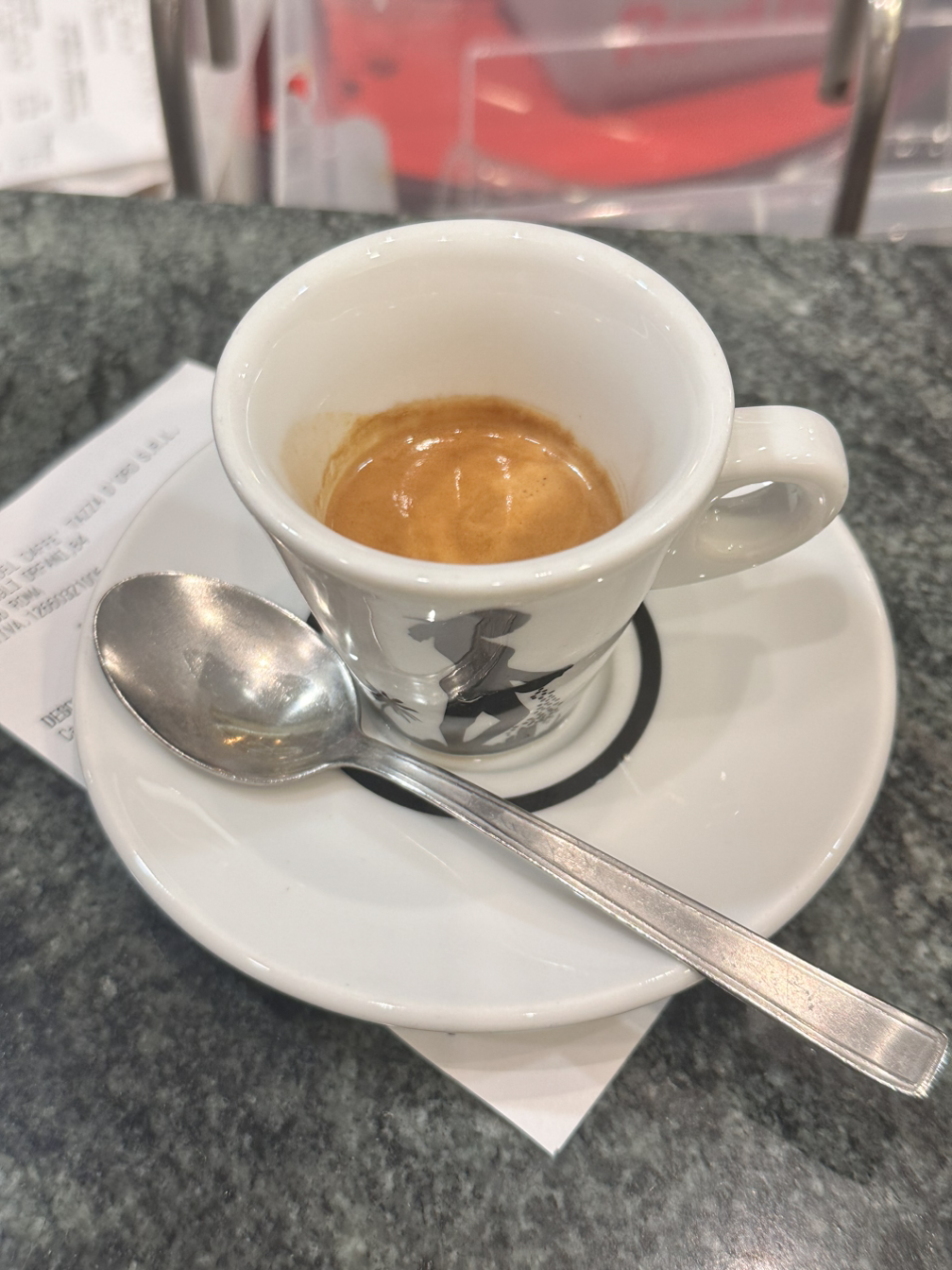 시장 구경을 마저 하고 향한 곳은 타짜도르이다. 로마의 3대 카페를 모두 가보겠다는 결심이 있었기에 타짜도르로 향했다. 커피를 이미 마시긴 했지만, 카페인에 크게 민감하지 않아 에스프레소 한 잔과 샤케라또 한 잔을 주문했다. 낭만 가득하게 바에서 먹었는데 더 맛있는 것 같았다. 에스프레소는 사실 이탈리아를 제대로 느껴보고 싶어서 주문했는데 대성공이었다. 한국에서도 에스프레소 바를 즐겨 가는데 콘파냐와 같은 커피만 주문해서 에스프레소를 마시는 것은 처음이었다. 커피로 유명한 이탈리아의 3대 카페답게 쓴 맛이 거의 느껴지지 않고 부드럽고 풍미가 가득했다. 설탕을 넣어먹지 않고도 초딩 입맛인 내가 먹을 수 있을 정도였다. 1/3쯤 남았을 때 설탕을 추가해 봤는데, 오히려 이도저도 아닌 맛이 되어서 원래의 맛이 더 좋았다. 에스프레소를 마시고 나니 친절하신 직원 분께서 샤케라또를 주셨다. 설탕을 넣고 만들지를 선택할 수 있었는데, 에스프레소만 거품으로 마시면 쓸 것 같아서 넣는 걸로 부탁드렸다. 샤케라또는 시원한데 얼음이 직접적으로 들어가지 않아 차갑지 않고, 부담스럽게 달지도 않고 거품이라서 부드러움 가득한 맛이었다. 나는 거품을 그렇게 좋아하지 않아서 2/3쯤 먹은 후에는 감동이 덜했지만, 현지의 맛이라 그런지 만족스러웠다. 어제의 산트 유스타치오보다 타짜도르가 더 취향인 것 같다.