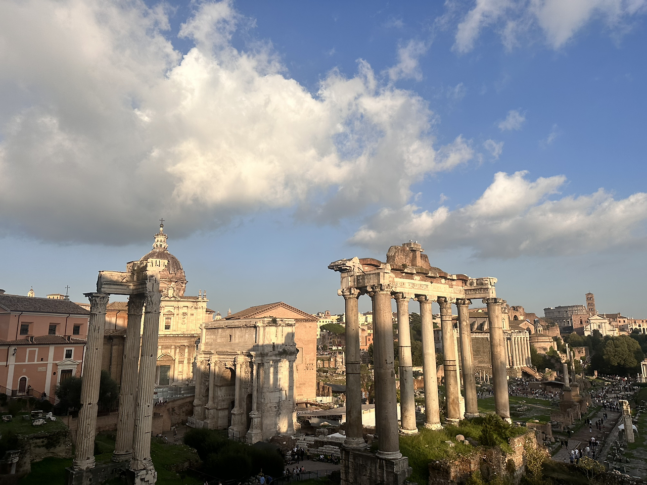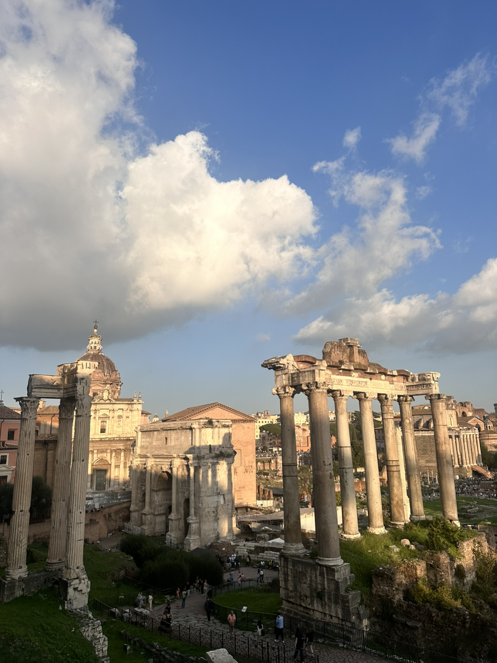 투어를 하면서 가장 인상 깊었던 곳은 캄피돌리오 광장이다. 종교적인 이유로 동상의 위치를 바꿨다는 얘기부터 바닥에 있는 모양에 관한 설명도 신기했다. 위에서 보면 아름다운 꽃의 모양인데, 헬리콥터도 사다리차도 없는 그때 수학적인 계산만으로 이렇게 완벽한 바닥 장식을 만든 미켈란젤로가 위대하게 느껴졌다. 여기는 로마에서 내가 가장 좋아하는 뷰도 있는데, 화창한 하늘과 잘 어울리는 포로 로마노의 뷰도 아름다웠다. 마지막 코스인 콜로세움까지 야무진 구경을 마치고 언니들을 만나러 갔다.