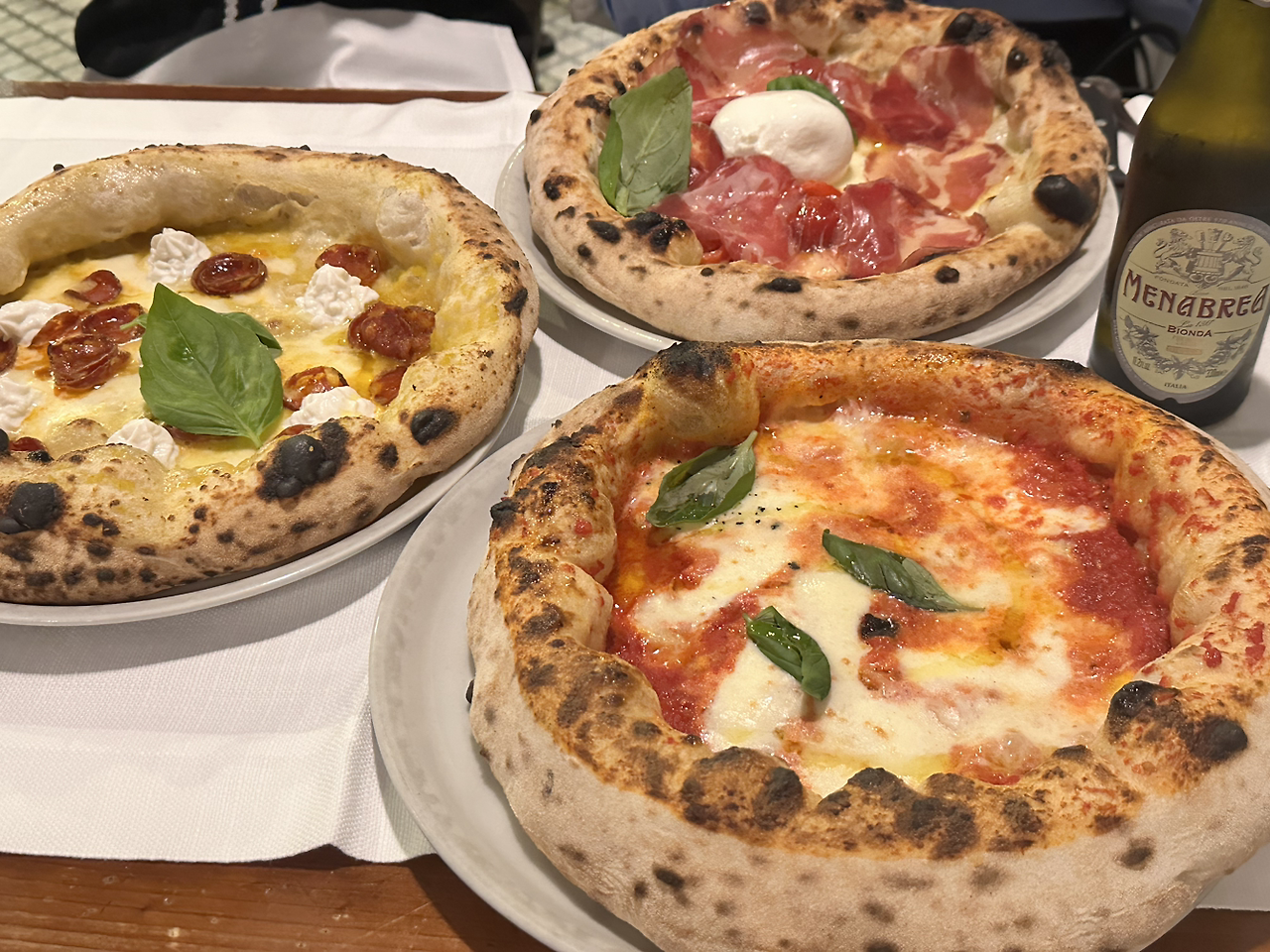 점심은 민박집 언니들과 유명한 피자집에 가기로 했다. 너무 유명해 오픈 전에 웨이팅을 해야 된다고 그래서 30분 미리 가 기다리고 있었다. 오픈 25분 전이 되니 갑자기 사람들이 몰려들었다. 줄에서 30분 기다리면서 메뉴도 미리 정해놨는데, 결론적으로는 잘한 일인 것 같다. 우리랑 같이 오픈할 때 들어간 팀 중에 우리가 다 먹고 나올 때까지 메뉴를 받지 못한 팀도 있었기 때문이다. 우리는 들어가자마자 주문을 해서 빠르게 받을 수 있었다. 그렇게 줄에서 고른 메뉴는 클래식 마르게리따, 옐로우 피자 하나 그리고 부라타치즈 피자이다. 언니 한 명은 맥주를, 한 명은 물을 주문했다. 나는 마르게리따를 먼저 먹어봤는데, 감동의 맛이었다. 이게 피자지! 이게 피자의 나라지!라는 말이 절로 나오는 맛이었다. 담백하고 쫄깃한 도우, 상큼한 토마토소스, 풍미 가득한 치즈까지 튜닝의 끝은 순정이라는 말도 떠오르고, 클래식은 영원하다는 말도 떠오르는 맛이었다. 인생 피자로 등극한 마르게리따이다. 이외에 옐로우 피자는 이국적인 맛있는 피자였고, 부라타치즈 피자는 먹기가 약간 불편했지만 햄 등의 다른 재료와 잘 어우러져 역시 맛있었다.