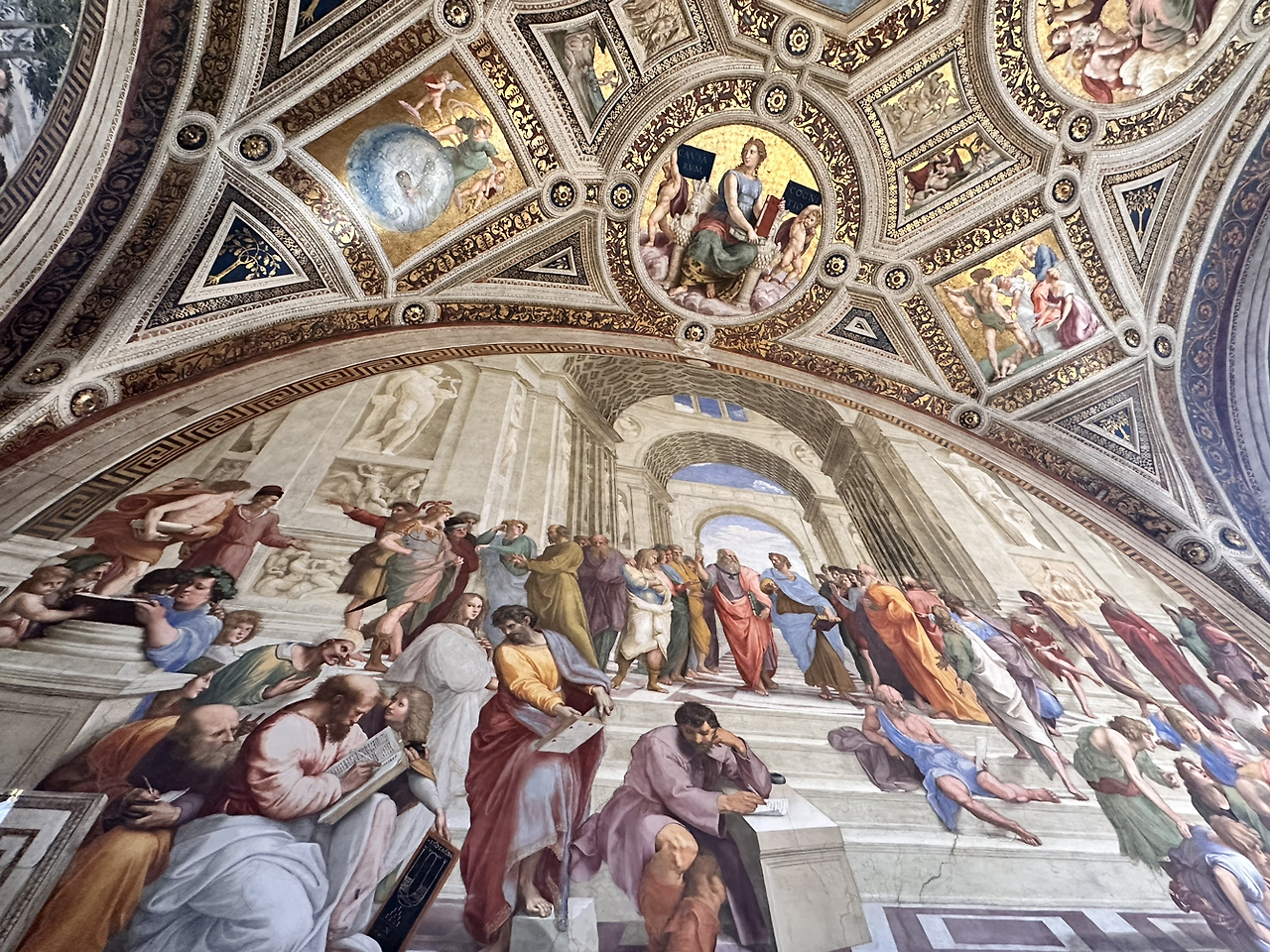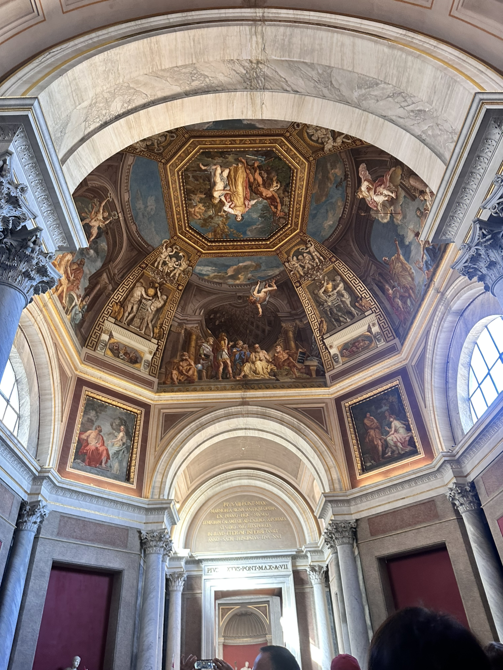 다음 코스는 박물관이었다. 가는 길마다 조각상도 있고, 천장화와 벽화 등등 그림을 보면서 설명을 들으니 신기하기도 하고 그림을 조금은 이해할 수 있어서 좋았다. 평소 예술 지식이 별로 없이 감상을 하는데, 설명을 들으니 이 그림이 왜 여기에 있는지, 그림의 포인트는 무엇인지, 그림의 뜻은 무엇인지, 작가의 의도는 무엇인지 등 다양한 시각에서 설명을 들을 수 있어 좋았다. 사진을 못 찍었지만 이탈리아의 곳곳을 지도로 그린 그림이 걸려있는 복도가 있었는데, 우리나라의 지도를 부분 부분 그려 전시하고 곳곳에 자기와 같은 한국적인 작품을 넣어도 아름다울 것 같다. 그리고 확실히 화려한 복도에 그림이 걸려있으니 웅장했다.