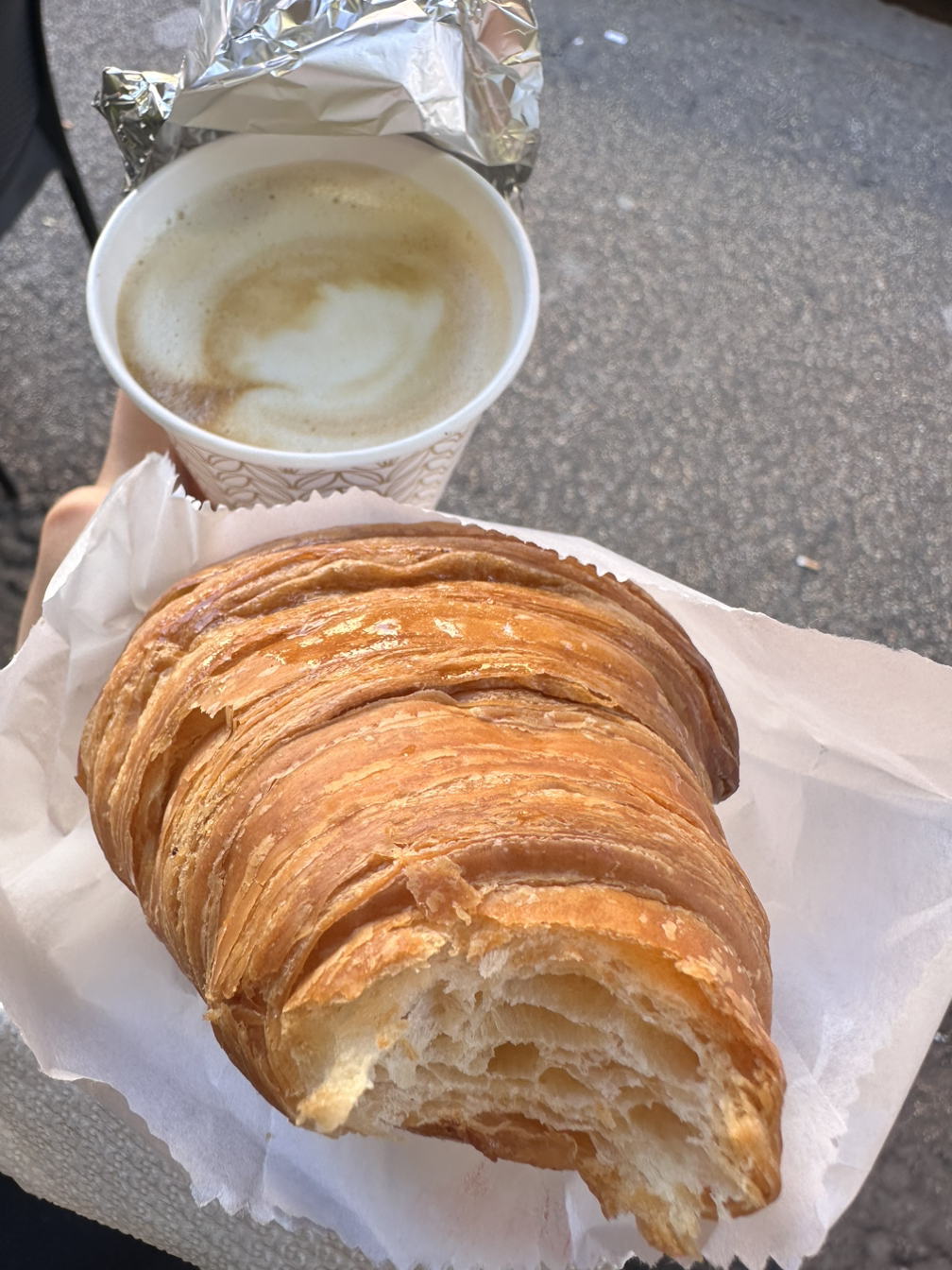 친구와 잠깐 전화를 해야 해 같이 있던 분과 헤어져 다른 카페로 갔다. 전화하기로 한 친구가 추천해 준 카페라서 거기서 영상통화를 하면 친구가 좋아할 것 같았다. 20분 정도 걸어 친구의 추천 메뉴인 라떼와 살구 크로와상을 주문해 친구와 전화를 했다. 여기 카페라떼는 특이하게 달달한 크림을 올려주셨는데, 커피의 고소함과 향과 잘 어울렸다. 여기도 허름한 동네 카페였는데, 그래서 더 낭만 가득했다. 친구랑 전화도 하고 저녁 먹을 맛집도 찾아 저녁을 먹으러 갔다.