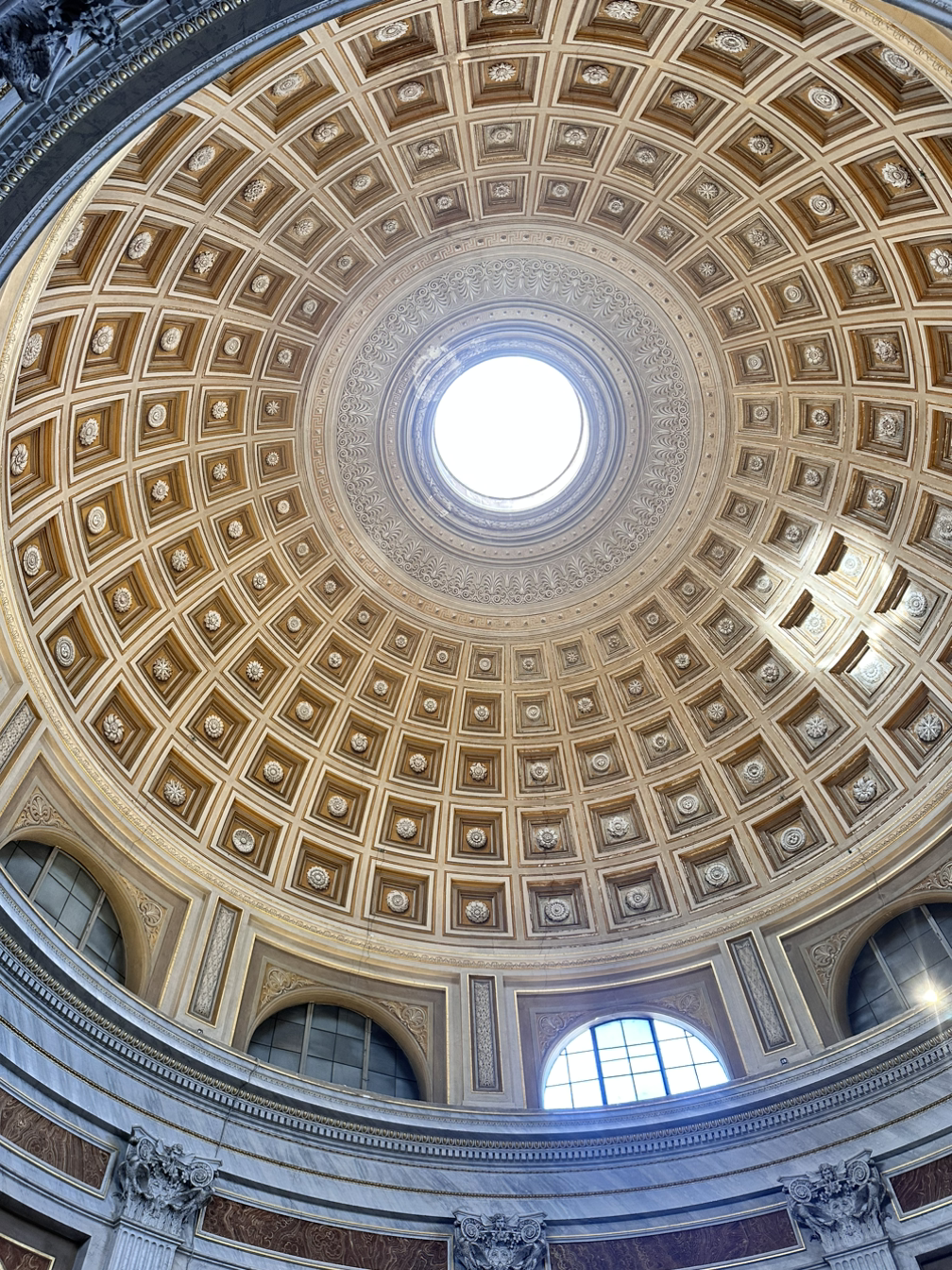그렇게 바티칸 곳곳을 둘러보고 대망의 시스티나 경당으로 향했다. 바티칸의 꽃인 그곳! 미술에 큰 관심은 없지만 경당에 들어가려니 설렜다. 사람으로 가득한 경당이었지만, 들어가자마자 ‘우와’라는 말이 나왔다. 천장화부터 눈에 들어왔다. 가이드님이 설명해 주신 대로 천장화의 중간에서 화풍이 바뀌고 인물의 크기가 바뀌는 것도 신기했고, ET 포즈로 유명한 아담의 창조 그림에서 배경이 뇌라는 것도 설명을 듣고 직접 보니 신기했다. 목이 아파서 최후의 심판으로 고개를 돌렸다. Holy 한 경당에 이렇게 사실적이고 비판적인 그림들이 있는 게 신기했고, 설명을 들은 부분을 하나하나 뜯어보니 더 재밌었다. 천장화와 벽화를 골고루 보다가 목이 아파 자리에 앉았다. 가장 유명한 두 그림 이외에도 성당 자체가 그림으로 가득해서 이곳저곳 살펴보느라 시간이 빠르게 지나갔다. 설명을 듣지 않은 나머지 그림에 대해서는 혼자 생각도 해보고, 설명을 들은 그림은 설명대로 이해하니 넉넉하게 주신 자유시간이 짧게 느껴졌다. 그렇게 한참을 구경하다 다시 집합 장소로 갔다.