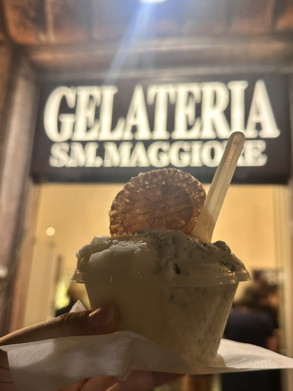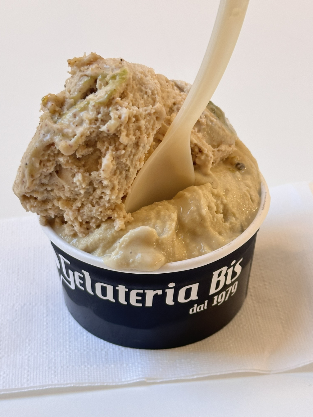 가는 길에 가보고 싶었던 젤라또 집이 있어 간단하게 젤라또를 먹기로 했다. 젤라또 진열장 옆 냉장고에 과일이 신선해 보여 배 맛과 스타치아뗄라를 주문했다. 가장 작은 사이즈인데도 4유로라서 약간 당황했지만, 컵의 크기가 컸다. 여기의 젤라또도 맛있었다. 배도 소르베가 아닌 젤라또의 느낌이 강했고, 부드러워서 맛있었다. 4유로의 가격 때문에 어제 간 젤라또 집이 조금 더 좋았지만, 3대 젤라또 가게보다는 여기가 더 맛있었다.