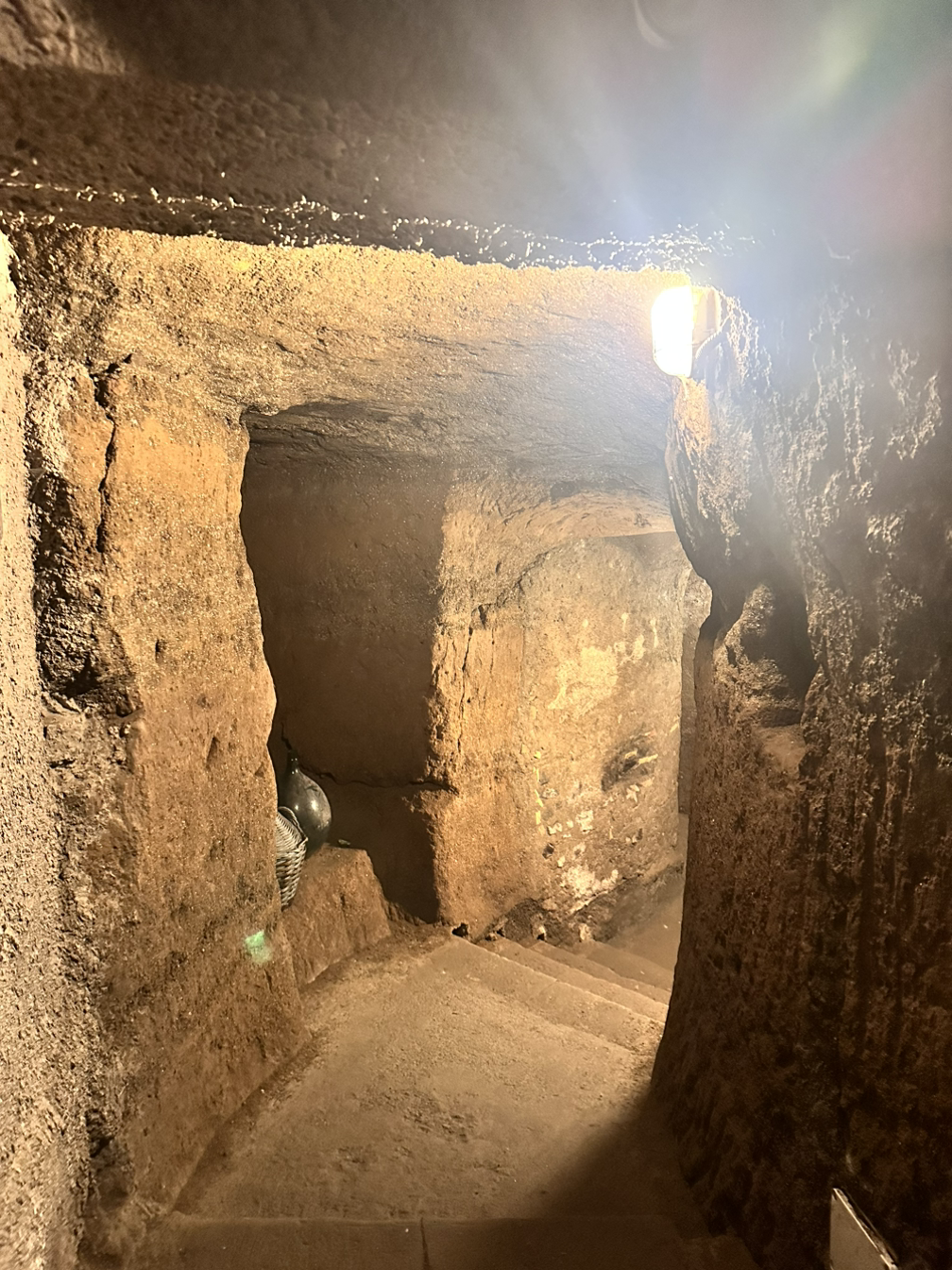중간에 지하 공간 구경도 했다. 지금은 와이너리가 따로 있어서 이 공간에서 와인을 만들지는 않지만 전쟁 때는 대피하는 공간으로 사용되기도 했다고 한다. 확실히 지하 공간이라 시원했다. 온도가 12도에서 15도 사이로 유지되어 와인을 만들기 좋다고 한다. 전에 이탈리아에 왔을 때 지하 무덤인 카타콤베에 갔는데, 그때의 추억도 떠올랐다. 15세기부터 가족들이 실제 거주하던 공간을 보니 이탈리아에 더 가까워진 것 같았다.