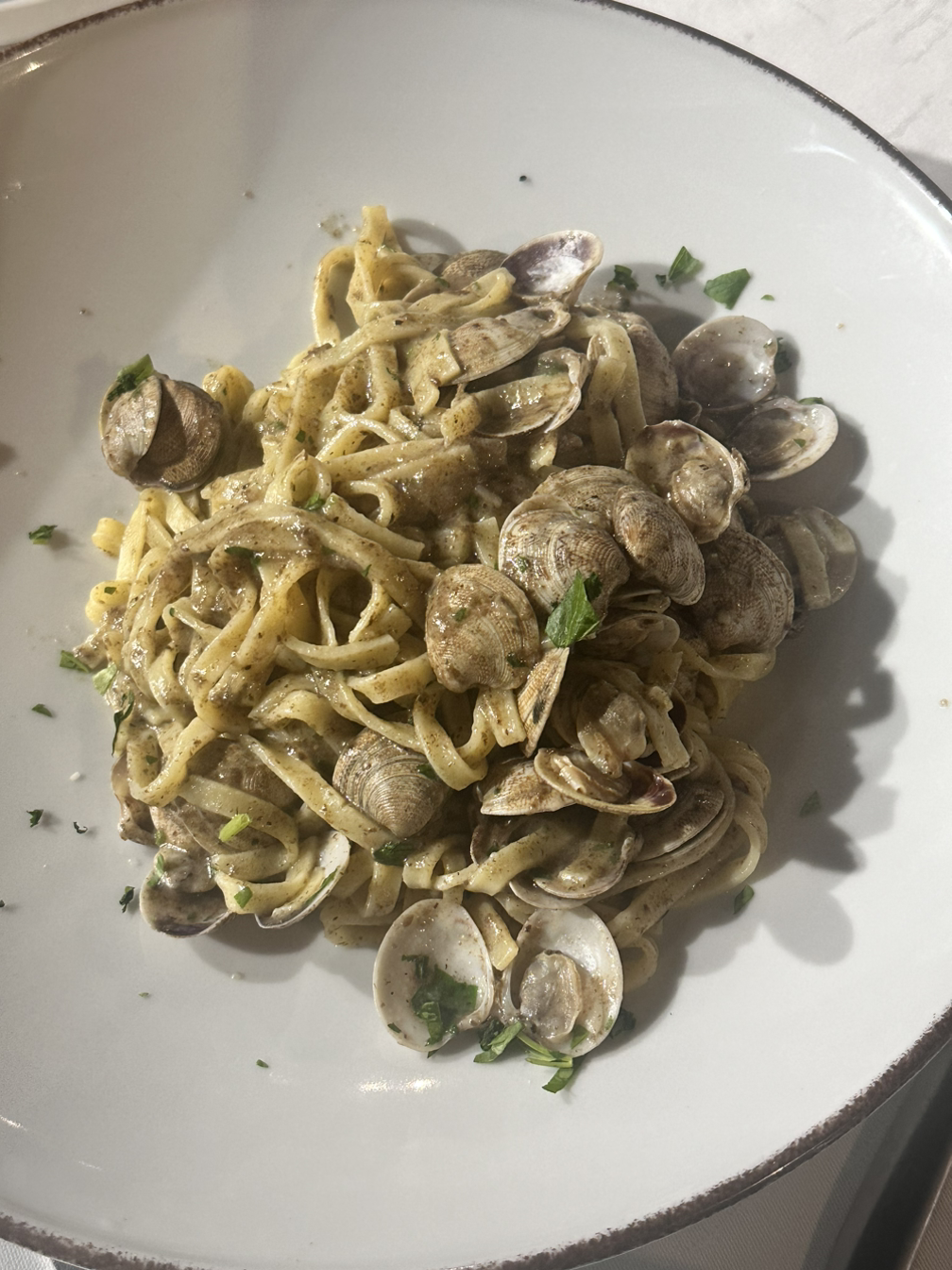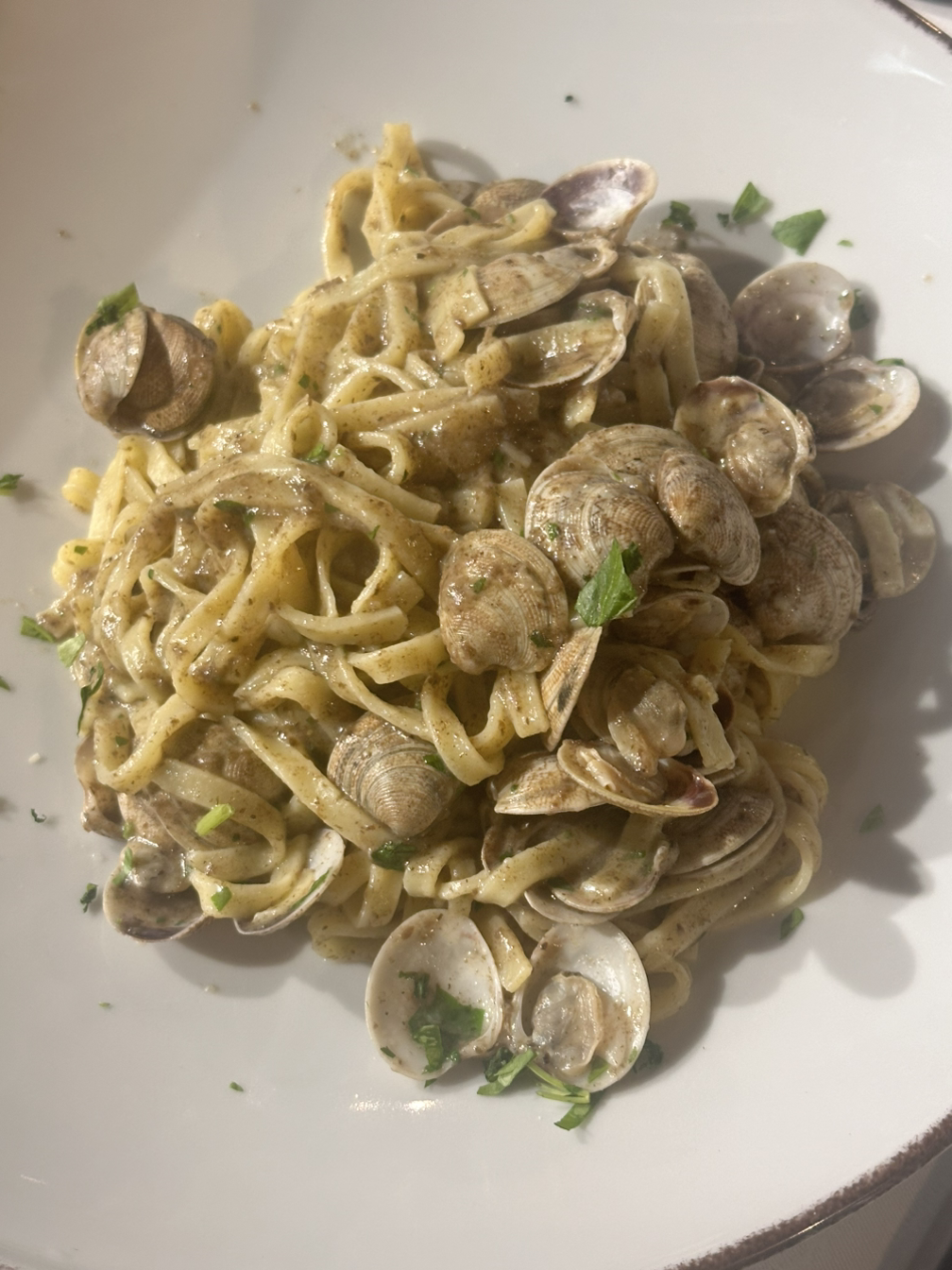 그렇게 카페로 갔는데 브레이크 타임인지 모두 영업을 하지 않아서 숙소로 들어갔다. 숙소에서 책을 마저 읽고 낮잠도 자고 저녁을 먹으러 나갔다. 숙소 주변에 찾아놓은 맛집이었는데 트러플 봉골레 파스타가 맛있다고 해서 가게 되었다. 갔는데 한국 사람으로 가득했다. 테라스에 앉은 사람 열 명 모두가 한국인이었다. 그래서 혼자 갔지만 양 옆 테이블의 얘기를 들으며 심심하지 않게 먹을 수 있었다. 가장 유명한 메뉴가 트러플 봉골레 파스타라서 모두가 그 메뉴를 주문한 것 같다. 대량 조리의 여파인지 소스가 별로 없어 아쉬웠다. 그래도 맛있게 먹고 숙소로 돌아왔다.