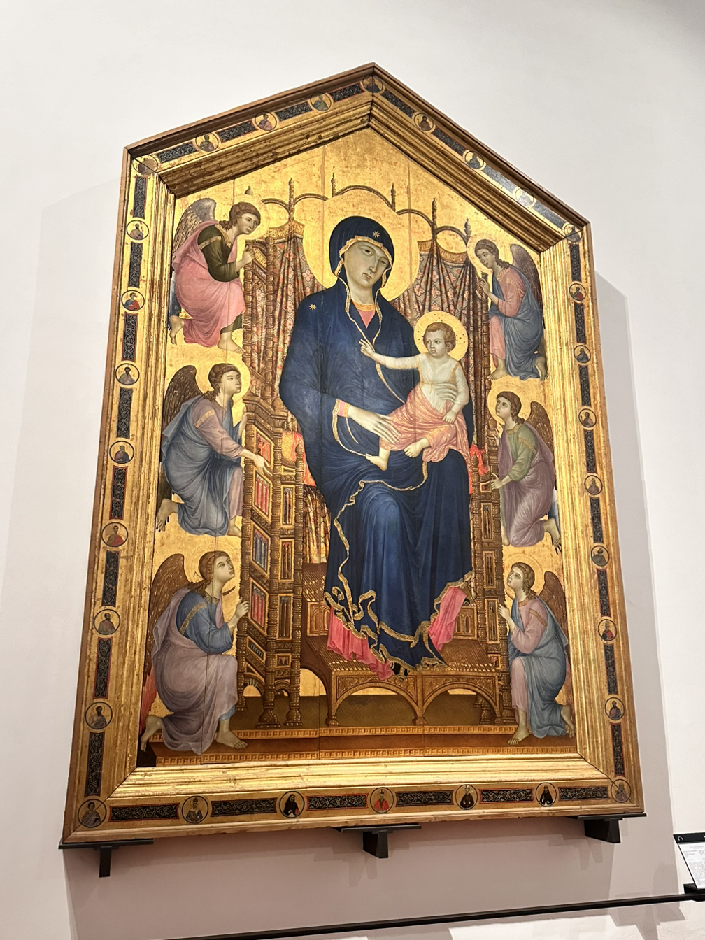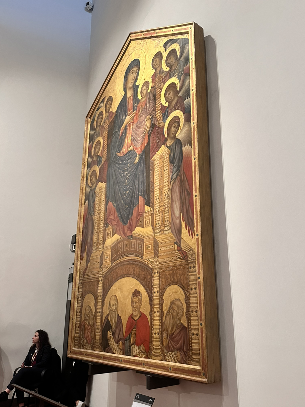 기억에 남는 그림 중 하나는 세 화가가 그린 마에스타이다. 들어가자마자 본 그림이라서 기억에 남는 것도 있지만 치마부에, 두초 그리고 조토까지 세 명의 화가가 예수를 안고 있는 성모 그리스도라는 같은 주제를 비슷한 구도와 사이즈로 그리는데 적용한 기법이나 인물의 모습, 특징이 다른 게 놀라웠다. 이렇게 짧은 시간 사이에 그림의 변천사도 볼 수 있었고 미술관을 쭉 둘러보다 보면 미술사의 발전에 따라 변화하는 화풍도 신기했다. 한 작가의 작품 안에서도 주변의 영향을 많이 받아 시간에 따라 화풍이나 디테일이 변하는 것도 놀라웠다.