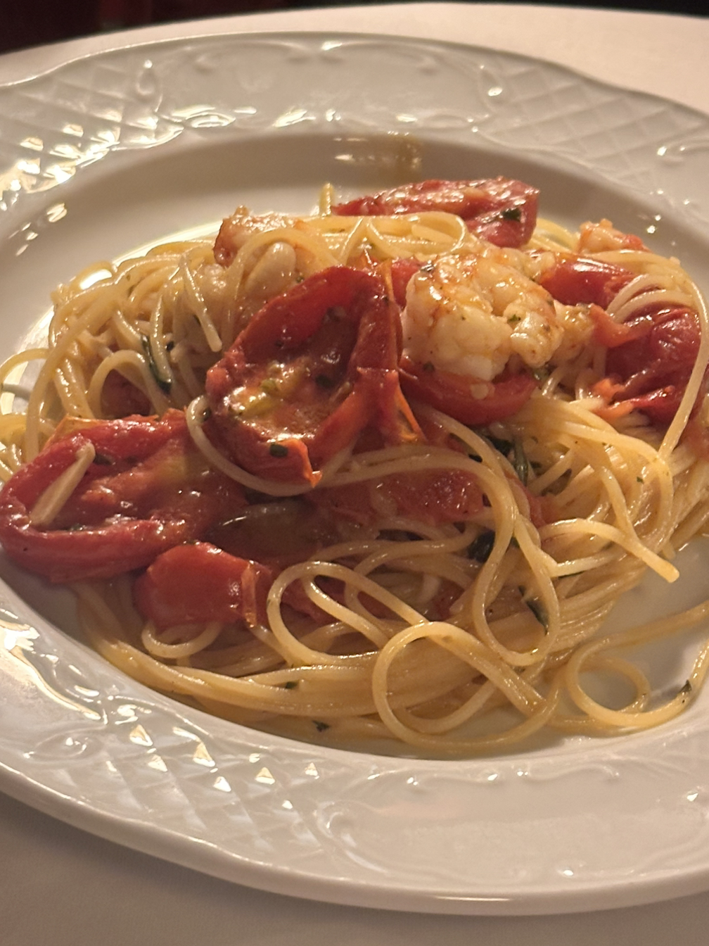 드디어 메인 메뉴가 나왔다. 스테이크는 후추와 코냑 소스와 함께 나왔다. 한 입 썰어 먹어보니 정말 맛있었다. 중간에 질긴 부분이 있긴 했지만, 피해서 먹으면 부드럽고 고소하고 촉촉해 정말 맛있었다. 같이 나온 소스가 킥이었는데, 돼지고기의 냄새도 없애주고 푹 끓여서 그런지 맛있었다. 안에 들어간 후추도 전혀 맵지 않아 고기와 함께 먹으니 잘 어울렸다. 다음으로 먹은 감베리 파스타도 천국의 맛이었다. 새우의 향이 진하고, 오일이 들어갔는데도 선드라이 토마토 때문에 느끼하지 않았고, 새우살도 고소하고 맛있었다. 먹는 내내 감탄을 하면서 먹었다. 와인도 고기랑 곁들이니 행복의 맛이었다. 그렇게 만족스러운 저녁을 마치고 헤어졌다. 언니는 집으로, 나는 산책을 하러 떠났다.