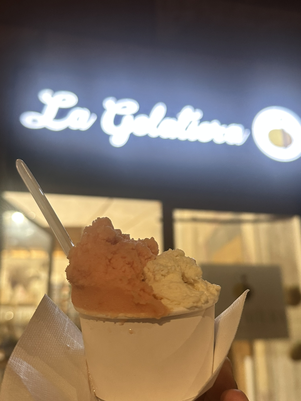 산책이라고 해봐야 별거 없지만 Eataly라는 식료품 점에 가서 구경을 했다. 파스타면, 페스토 등등 다양한 현지의 재료를 팔아서 보는 재미가 있었다. 구경을 마치고 집에 가는 길에 맛있어 보이는 젤라또 집이 있어 향했다. 무려 구글 리뷰 4,9점의 집이었는데, 문 닫기 5분 전에 갔는데도 세상 친절하신 사장님께서 추천도 잘해주셨다. 나는 추천받은 대로 리코타 치즈 아이스크림과 오렌지 아이스크림을 주문했다. 결론부터 말하자면 여기도 인생 젤라또집 등극이다,,, 달달하고 부드럽고 고소하고 고급스러운 치즈 맛에 오렌지 껍질이 작게 들어가 느끼함을 잡아줬고, 오렌지는 상큼해서 입가심하기 좋았다. 그렇게 만족스러운 젤라또 후 진짜 집에 돌아와 체크인도 마저 하고 사장님이랑 수다도 떨고 글도 쓰고 잠에 들려고 한다.