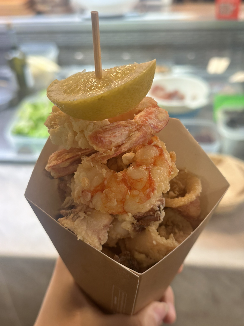 어느새 이탈리아에서의 일정도 끝이 가까워진다. 오늘은 친퀘테레라는 북부의 해안 마을에 가려고 했다가 피렌체 시내에서 하고 싶은 일이 남아 시내 구경을 하기로 했다. (사실 먹고 싶은 게 너무 많았다.) 일명 ‘현지인 day’를 보내는 날이다. 아침에 일어나 준비를 마치고 숙소 근처에 있던 중앙시장으로 향했다. 햇 올리브오일을 사러 갔다가 깜빡하고 못 사고, 구경만 했다. 확실히 피렌체라서 그런지 고기도 많이 팔고 파스타 면이나 치즈, 소스도 많았다. 구경을 하고 약간 출출해져 가장 유명한 깔라마리를 먹었다. 며칠 전에 2층에서도 먹어서 큰 감흥이 있을까 싶었지만 확실히 달랐다. 살면서 먹어본 깔라마리 중 단연 가장 맛있었다. 느끼하지도 않고 적당한 바삭함과 알맞은 간, 그리고 부드러운 오징어까지 합쳐져 훌륭한 맛이었다.
