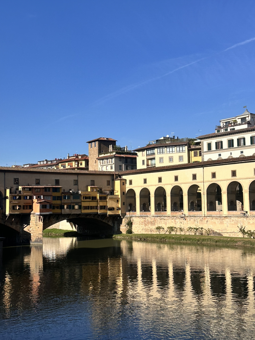 젤라또를 뿌시고는 베키오 다리로 향했다. 야경 투어를 하면서 본 적은 있지만 지나 본 적이 없어 건너가기로 했다. 메디치 가문의 통행을 위해 만들어졌는데, 정육점과 같은 가게는 냄새가 나서 금은방이나 시계를 파는 가게만 입점하는 걸로 바뀌었다고 한다. 그래서인지 오늘날에도 액세서리 파는 가게가 대부분이었다. 중간중간 기념품 파는 가게도 있어서 구경을 했지만 다리가 생각보다 짧아 빨리 지났다.