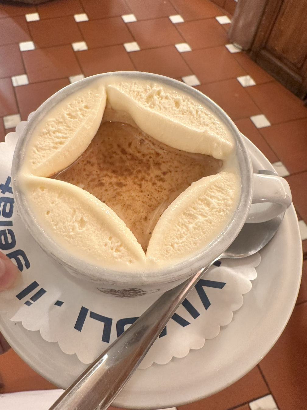 다시 배가 고파져 아포가토를 먹으러 갔다. 로마에서 만난 언니들이 거의 찬양하듯 말해서 아포가토의 맛이 궁금했다. 낮 시간인데도 사람이 많아 가게 밖까지 긴 줄이 이어졌다. 다행히 아포가토를 만드시는 직원분의 손이 빨라서 금방 받을 수 있었다. 안에 자리가 없어 나와서 먹었는데 기대를 많이 했음에도 감동의 맛이었다. 차가운 잔에 아이스크림과 에스프레소를 넣어서 그런지 뜨거운 에스프레소를 넣어도 미지근해지지 않고 시원했다. 달달하고 깊은 맛의 젤라또와 시원해진 에스프레소를 마시니 천국 같았다. 당+카페인의 구성이라 집 근처에 있었으면 하루에 두 잔씩 꼬박꼬박 사 먹을 맛이었다. 피스타치오 맛 아포가토도 많이 먹던데 혼자라서 못 먹은 게 아쉬웠다.