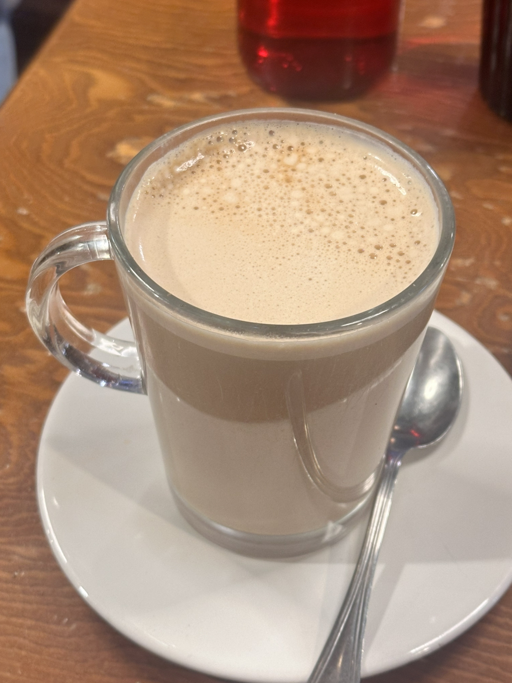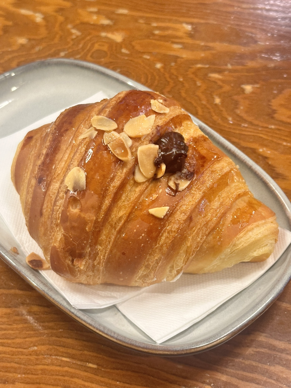 다음으로 향한 곳은 카페이다. 맛있는 커피를 마시고 싶어 주변에서 가장 후기가 좋은 카페로 향했다. 높은 리뷰답게 사람으로 가득했다. 카페에서 라뗴 한 잔과 초콜릿 크로와상을 주문했는데, 먼저 나온 라떼를 마셔보니 커피 맛이 진하지는 않았지만 부드럽고 맛있었다. 초콜릿 크로와상은 예상보다도 크림이 훨씬 많이 들어가 있어서 촉촉했다. 오히려 오히려 크림이 너무 많아서 느끼하긴 했지만, 커피랑 잘 어울렸다. 그렇게 여유롭게 즐기다가 다음 코스로 향했다.