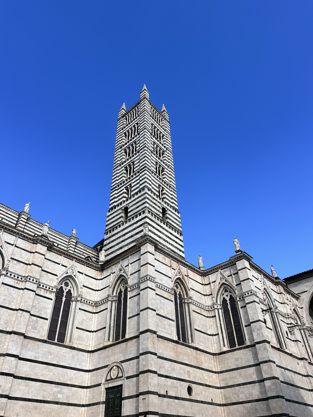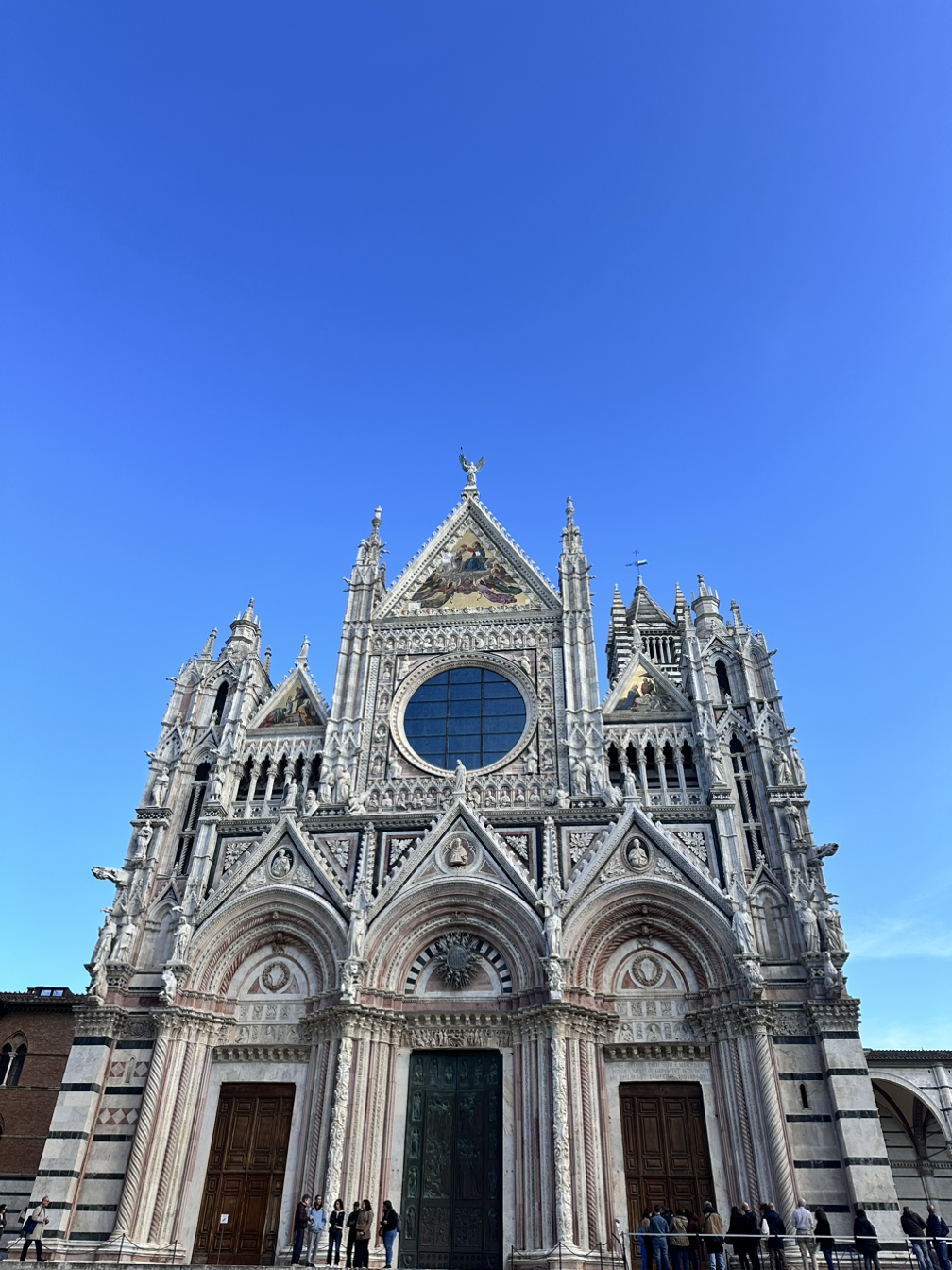 한 시간 정도를 달려 도착한 곳은 시에나이다. 피렌체, 로마 등 다양한 이탈리아의 도시 중에서 시에나가 가장 중세의 모습이 잘 보존된 도시인 것 같다. 건물들도 분위기가 약간 다른데, 벽돌 건물이 많아 antique 한 느낌이 강했다. 자유 시간은 2시간 정도 주셔서 중심에 있는 캄포 광장부터 향했다. 앞에 있는 시청 건물이 웅장했고, 광장이 넓어서 사람들이 누워있기도 하고, 학생들이 여행을 와 설명을 듣고 있기도 했다. 처음에는 ‘광장이 왜 유명하지?’ 싶었는데 넓은 광장에 앉아있으면 마음에 편안해졌다.