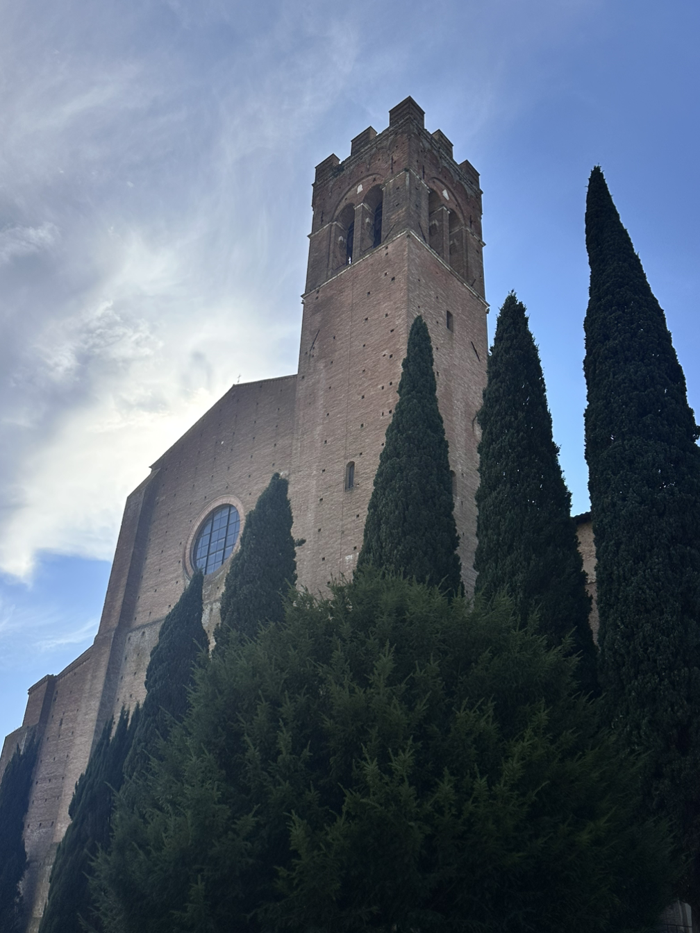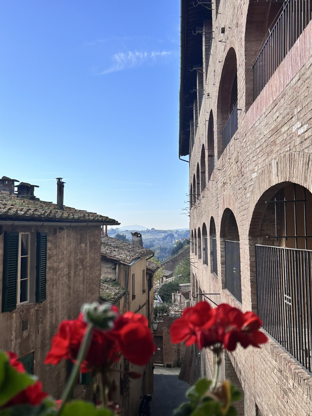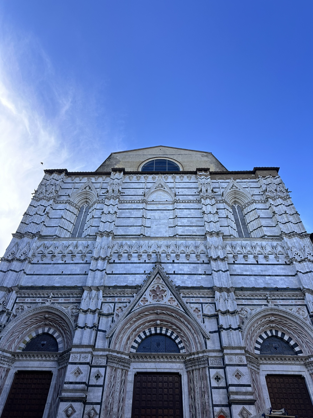 시에나에서 보고 싶었던 게 많아 발걸음을 재촉해 대성당으로 향했다. 피렌체 두오모를 보고 와서 감흥이 있을까 했는데 또 다른 웅장 함이었다. 시에나 자체가 조금 차분하고 무거운 분위기가 있는데 이 분위기에 웅장한 성당이 있으니 멋있기도 하고 압도되는 느낌도 있었다. 전에 이탈리아 여행에 왔을 때 엄마가 시에나를 가장 좋아하셔서 대성당을 보여드릴 겸 영상통화도 하고 다시 걸어가기 시작했다. 구체적인 목적지를 정해놓지 않고 여기저기 돌아다니기 시작했는데, 우연히 들어간 골목에서 아름다운 풍경을 만났다. 말로 표현할 수 없는 풍경이었는데, 보자마자 반해서 십 분 정도를 멍하니 보고 있었다. 그러고 이동하면서 갈 장소를 찾아봤는데, 성녀 카테리나 집과 산 도메니카 성당이 있어서 그쪽으로 발걸음을 옮겼다.