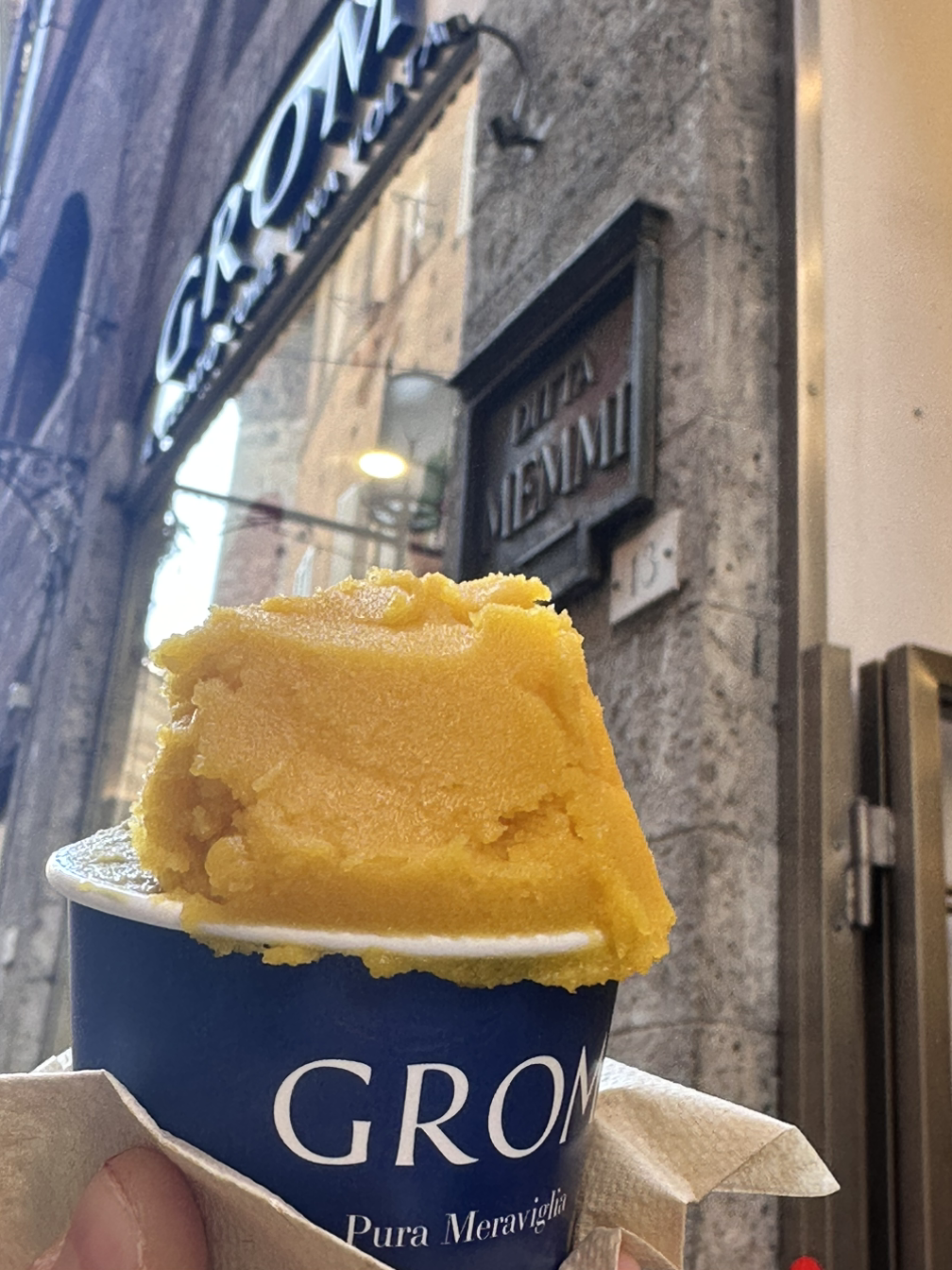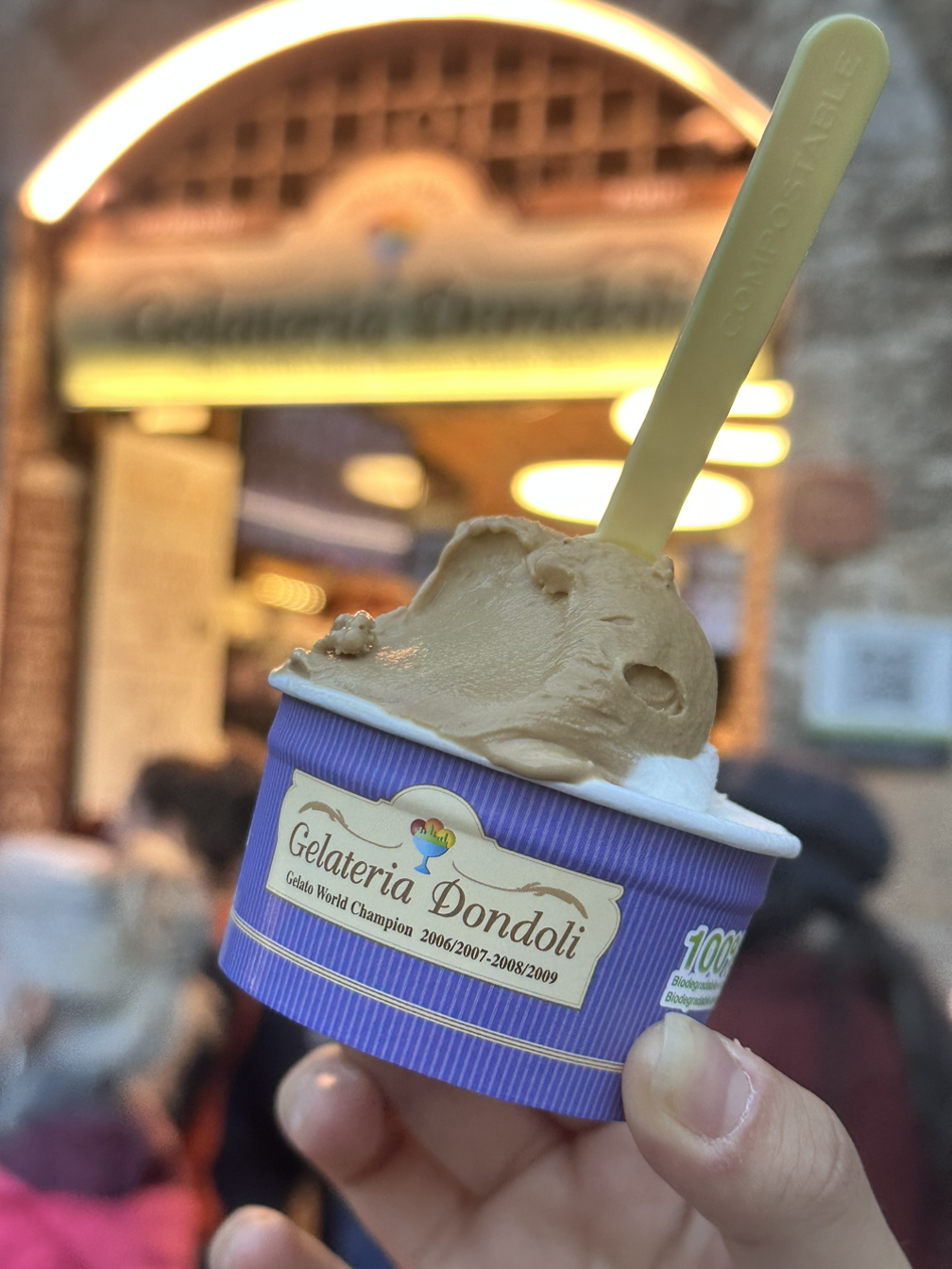 산 지미냐뇨의 또 다른 행복은 젤라또였다. 세계 1등을 한 젤라또 집이 있다고 해서 가봤다. 전에 먹어보지 못한 맛을 먹고 싶어서 레몬과 에스프레소를 주문했다. 레몬은 상큼하게 맛있었고, 에스프레소는 달달해서 믹스커피 맛이었다. 둘 다 쫀득하고 부드러워서 맛있게 먹었다.
