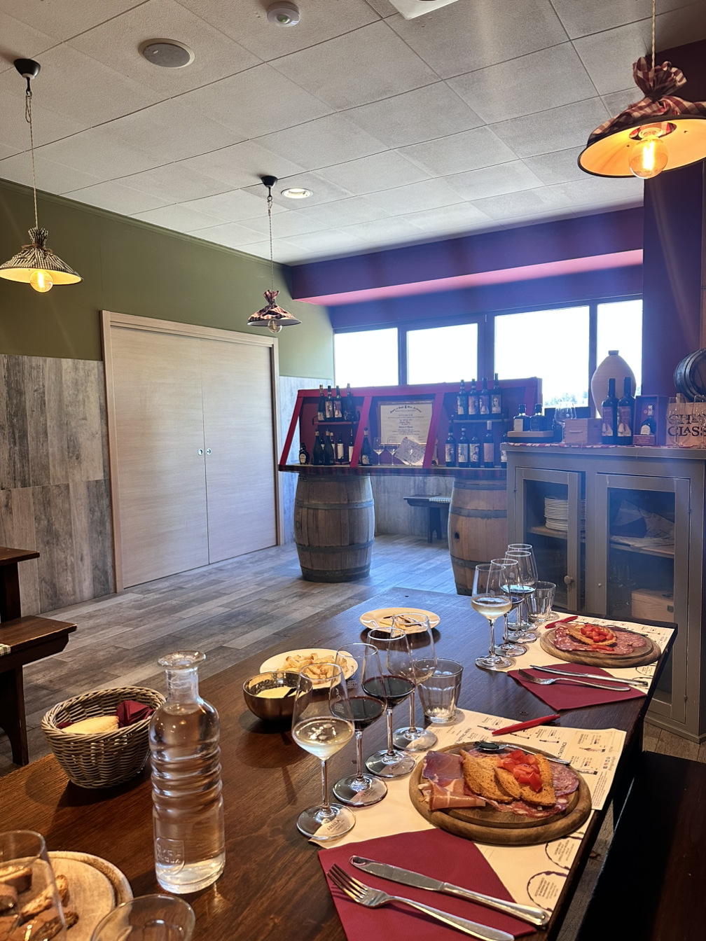 버스를 타고 30분 정도를 달려 와인 테이스팅 장소로 갔다. 점심 식사와 함께 9가지를 테이스팅 하는 곳이었는데 와인 4 종류, 발사믹 2 종류 그리고 오일 3 종류를 먹어봤다. 와인은 화이트 와인 한 종류, 레드 와인 두 종류 그리고 로제 와인 한 종류였다. 화이트 와인부터 마셔봤는데 시원하고 탄산이 센 와인이었는데 깔끔해서 먹어본 화이트 와인 중에 가장 맛있었다. 프루티 하면서도 달지 않고 가벼워서 식전주로 딱이었다. 가이드님이 설명해 주시는 순서대로 테이스팅이 진행되었는데, 화이트 와인 다음은 올리브 오일이었다. 빵에 뿌려져 있어 올리브 오일도 음미하고 빵에 살라미와 프로슈토도 올려서 먹어봤다. 올리브의 향이 진해 맛있었다. 다음으로는 스푼에 올려진 20년 된 발사믹도 먹어봤다. 꿀처럼 점성이 큰 발사믹이었는데 먹어보니 역시 살면서 먹어 본 발사믹 중에 가장 맛있었다. 이 표현이 계속 나와 신뢰도가 낮아질 것 같지만 이 발사믹이 마지막이다. 상큼하고 톡 쏘는데 달달하고 부담스럽지 않아 맛있었다. 발사믹보다 올리브오일을 좋아해 발사믹에 큰 감흥이 없을 줄 알았는데 60유로나 하는 발사믹이라 그런지 확실히 달랐다. 혀에 닿자마자 눈이 번쩍 뜨이는 맛이었다. 서랍에 쟁여놓고 샐러드, 치즈, 과일, 그리고 아이스크림까지 뿌려먹고 싶었다. 다음으로는 조금 더 라이트 한 발사믹을 먹어봤다. 점성이 거의 없는 흐르는 식초 느낌의 발사믹이었는데 역시 깔끔했다. 중간중간에 프로슈토와 살라미도 먹고, 트러플 오일이 뿌려진 빵도 먹었다. 그러고 두 번째 와인인 레드 와인을 시음했다. 프루티 한 향이 있고 가벼운 레드 와인이었는데 같이 간 언니들이 감탄했지만 와알못인 나에게는 그저 맛있는 와인 같았다. 그러고는 점심 식사가 나왔다. 점심은 라구 파스타였는데 면이 펜네 면이라 맛있었다. 파스타와 함께 세 번째 와인의 시음이 시작되었다. 세 번째 와인은 고기류와 잘 어울리는 드라이하고 묵직한 바디감의 와인이었는데, 두 번째 마신 가볍고 프루티한 레드 와인과 비교하니 같은 레드 와인인데도 맛이 확연하게 달라서 신기했다. 레드 와인을 동시에 두 종류 마셔보기는 처음인데 가벼움과 묵직함, 프루티함과 우디향, 라이트한 마무리와 드라이한 마무리 이렇게 비교하면서 음미하니 재밌었다. 중간에 파스타에 페퍼오일도 뿌려주셔서 맛있게 먹어볼 수 있었다. 마지막 시음은 로제 와인이었다. 시원하게 주셨는데, 디저트 와인의 맛이 잘 느껴져서 맛있었다. 비스코티 쿠키와 함께 먹으니 잘 어울리고, 파티에 잘 어울리는 맛이었다. 테이스팅의 피날레로 완벽했다. 그렇게 배부른 테이스팅을 마치고 제품 구경도 했다. 와인이 40유로부터 60유로, 발사믹도 60유로 이렇게 비쌌는데 언니들은 두 세병씩 사고, 나는 들고 갈 자신도 없고 돈도 없어서.. 사지 못하고 귀가했다.