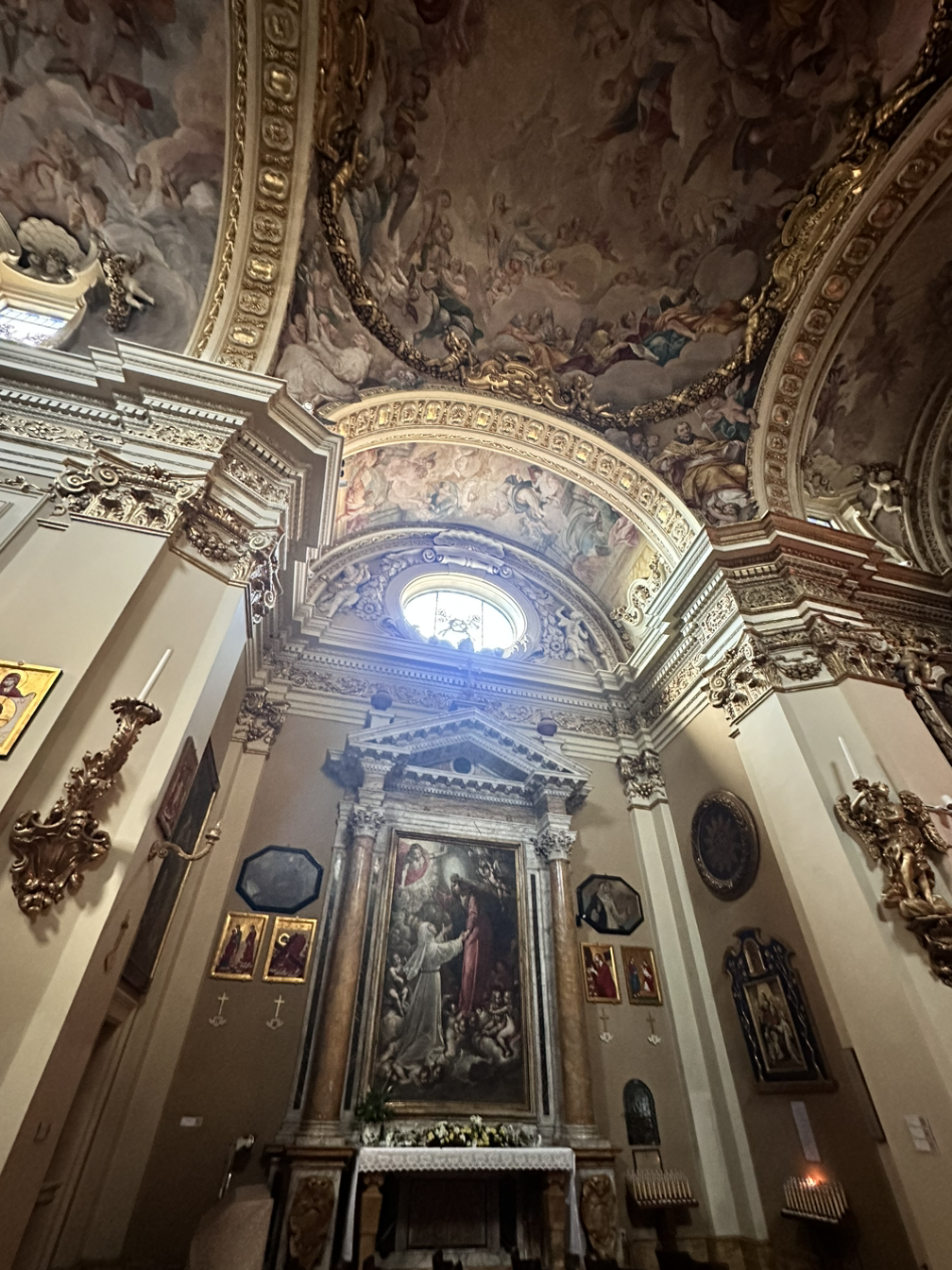 성녀 카테리나의 집은 걸어서 5분 정도 되는 거리에 있었다. 들어가자마자 보이는 풍경이 아름다운 수녀원 같았다. 꽃도 조화롭게 있고, 차분하면서도 밝은 분위기라서 홀린 듯이 들어갔다. 들어가서 구경을 하다가 성당 같은 공간에 들어갔는데, 분위기가 신비로웠다. 내가 가 본 성당 중에서 가장 압도되는 것 같았다. 이탈리아에서 큰 성당도 가고, 유명하다는 성당도 다 갔지만 이렇게 분위기와 신성함에 압도되는 성당은 처음이었다. 그래서 무교지만 잠깐 앉아서 기도하고 나왔다. 옆에 기념품 가게가 있어 가족 선물도 사고 길을 나섰다.