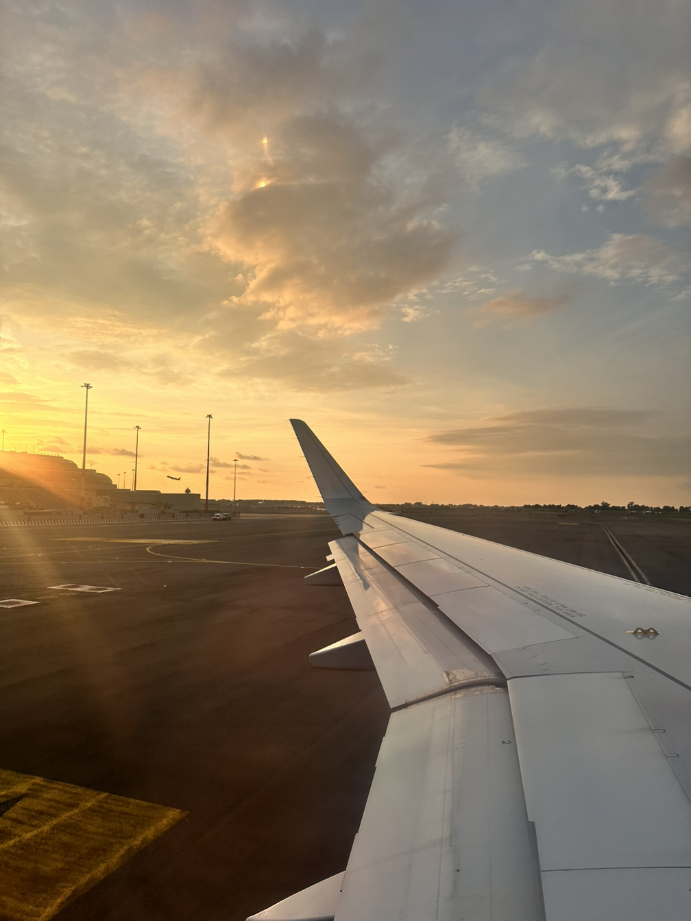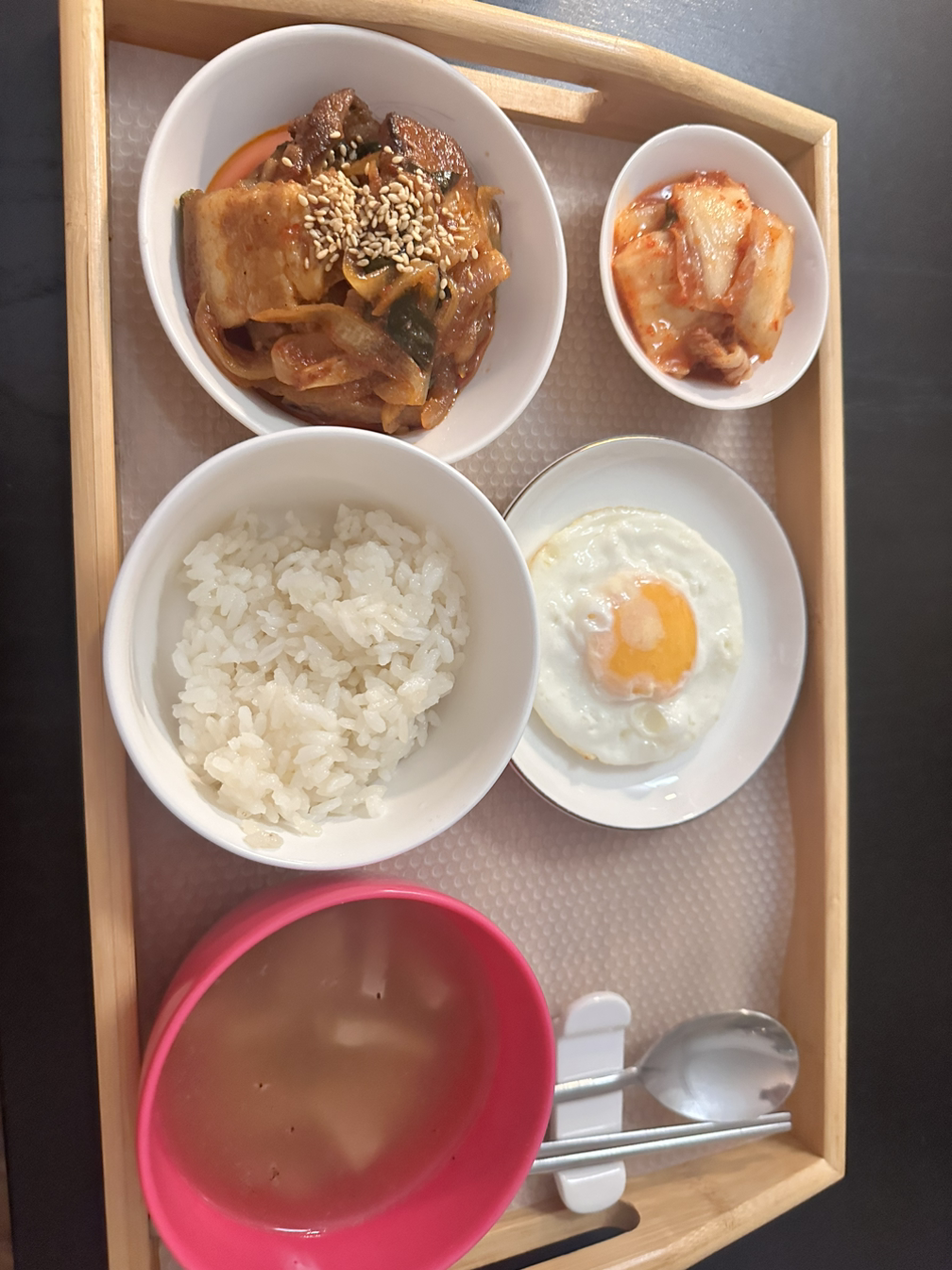 여행 40일 차이자 길었던 이탈리아에서 독일로 돌아오는 날이다. 아침 8시 반에 출발해야 해서 7시에 일어났다. 어제 짐을 거의 챙겨서 준비하고 남은 물건들만 캐리어에 넣어 정리했다. 마지막 날이라 조식을 미리 신청해 아침도 든든하게 먹었다. 오늘의 메뉴는 제육볶음에 뭇국, 그리고 계란 프라이였는데 제육은 매콤하고 뭇국은 칼칼해서 맛있었다. 그렇게 든든하게 아침을 먹고 트램을 타고 출발했다. 공항까지 40분 정도가 걸려 금방 도착했다. 비행시간 딱 2시간 전에 도착했는데, 카운터가 열리자마자 들어가 수속까지 마치니 정확히 6분 만에 면세 구역까지 들어갈 수 있었다. 혼자 뿌듯해하며 카페로 향했다. 어제 와인을 마시느라 다 못 쓴 글도 마저 쓰고, 커피도 마시며 여유로운 시간을 보냈다. 통유리 창문이 있어 밖에 있는 산과 비행기, 그리고 푸른 하늘을 바라보니 ‘이게 여유지’ 싶었다.