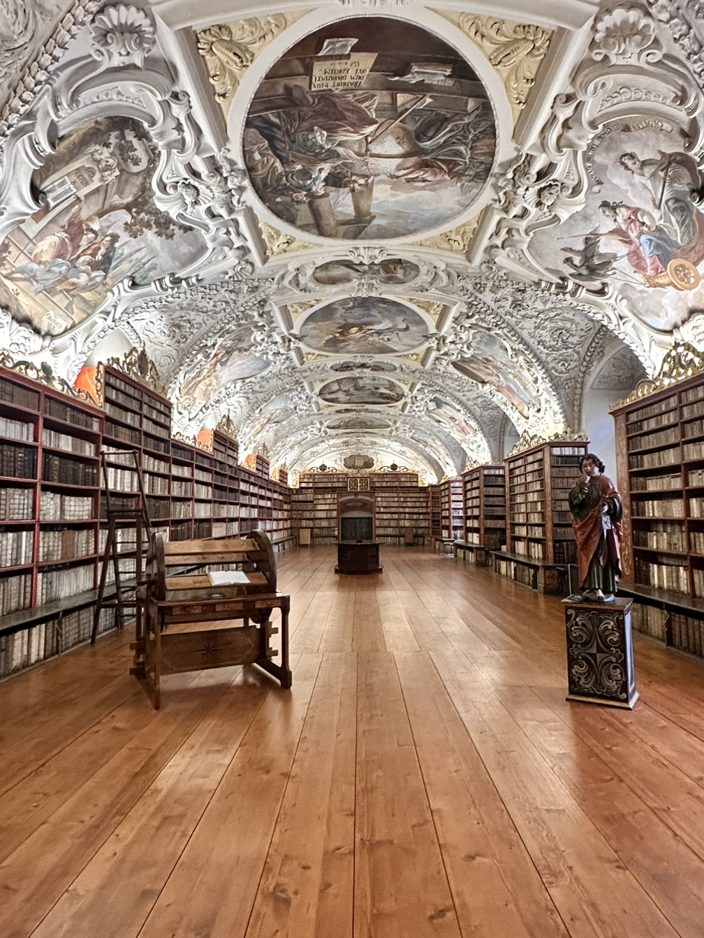 아침까지 든든하게 먹고 향한 곳은 스트라호프 수도원이다. 가장 멀리 떨어져 있어 수도원에서 시작해 시내 구시가지로 돌아오는 코스를 계획했다. 티켓을 끊어서 유명한 도서관도 보고, 수도원도 보고 뷰포인트도 봤다. 약간 흐린 날이었지만, 아기자기한 집들이 모여 아름다운 풍경이 펼쳐졌다. 특히 수도원에서 보니 프라하 성도 함께 눈에 들어와 예뻤다.
