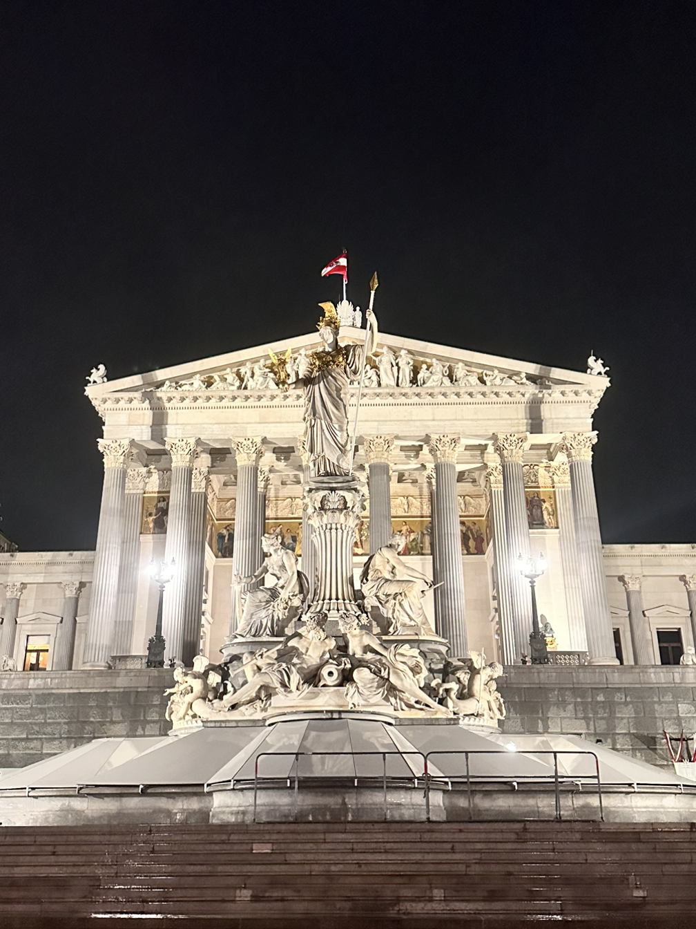 그렇게 구경을 마치고 의회의 야경, 그리고 왕궁의 야경까지 구경을 했다. 중간에 미술사 박물관 앞에 있는 마켓도 구경했는데 확실히 동네의 여기저기에 마켓이 있어서 구경하기 재밌었다. 판매하는 물건은 거의 비슷했는데 건물과의 조화가 예뻤다. 특히 박물관 앞의 마켓은 캐럴도 나와서 분위기가 더욱 좋았다.