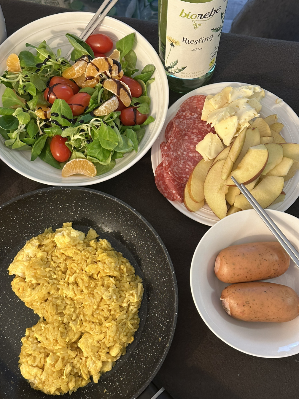 저녁으로 내가 뮌헨에서 혼자 살면서 자주 먹은 카레볶음밥을 만들어줬다. 소세지도 하나 굽고, 샐러드도 만들고 엄마가 좋아하는 살라미에 치즈, 그리고 사과도 같이 놨다. 엄마가 맛있게 먹어서 뿌듯했다.