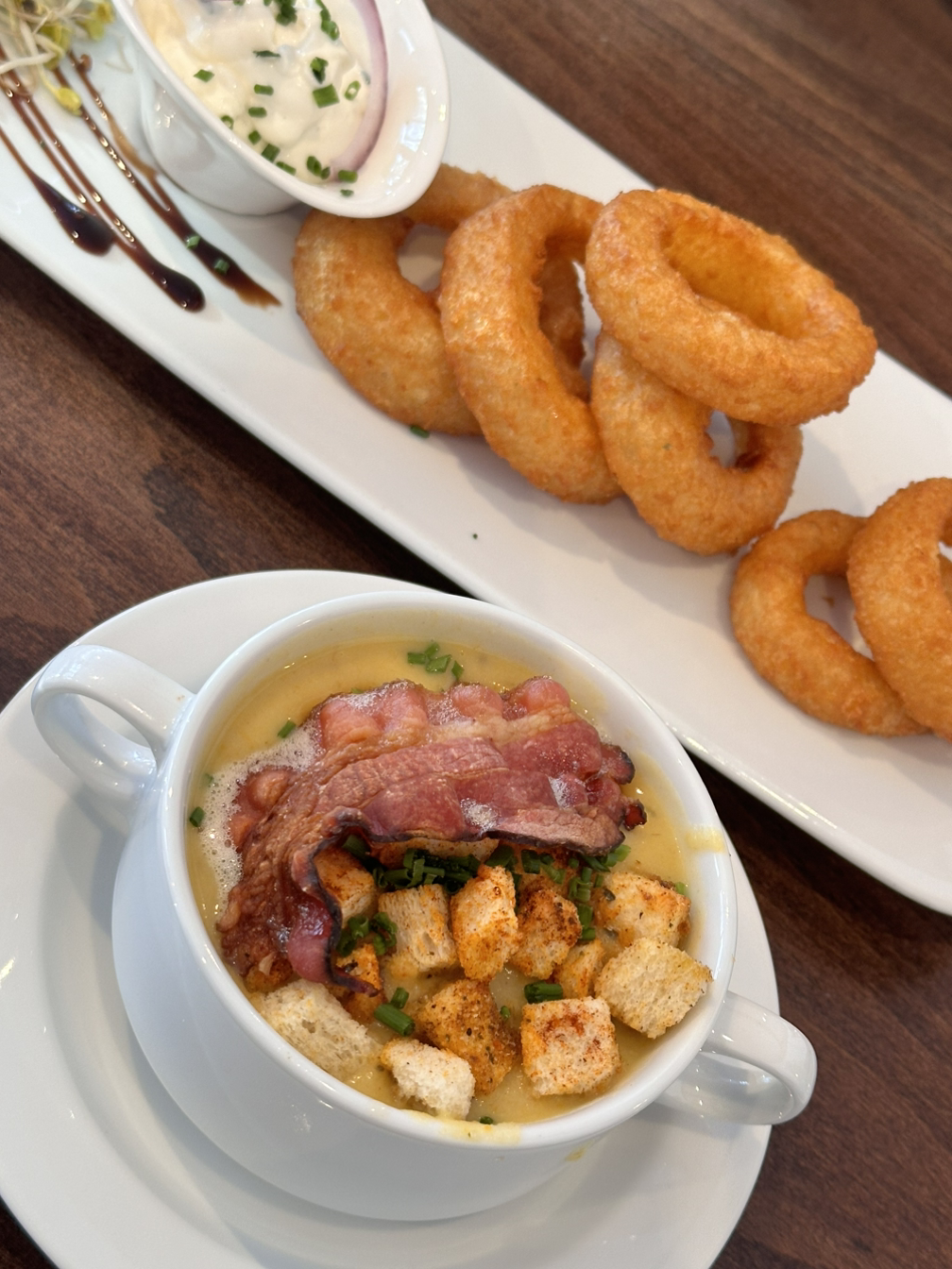 구글에 50분 뒤의 버스만 떠서 의아해하고 있었는데, 알고 보니 그게 맞는 시간표였다. 버스가 당연히 자주 올 줄 알고 알아보지 않은 것이 낭패였다. 밖에 있기는 추워서 근처의 카페로 들어가 몸을 녹였다. 따뜻한 감자크림 스프와 어니언링을 먹었다. 짭짤하고 바삭해서 맛있었다. 그렇게 몸도 녹이고 배도 채우고 드디어 버스를 타고 퓌센으로 돌아왔다. 퓌센 시내 관광을 할까 하다가 날이 추워서 바로 뮌헨으로 가기로 했다.