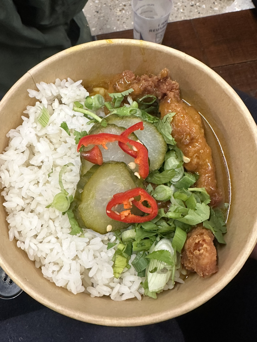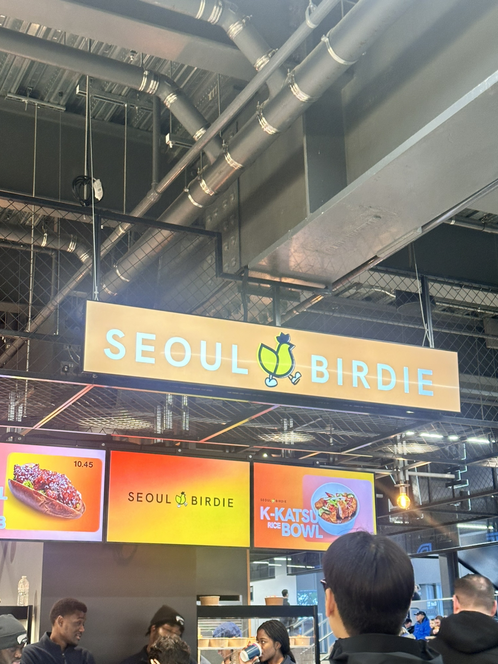 그리고 시작 2시간쯤 전에 내부로 들어갔다. 음식이나 음료를 파는 곳이 대부분이었는데, 응원하다 보면 배고파질 것 같아서 k-katsu rice라는 것을 먹었다. 든든하데 먹고 싶어서 고기랑 밥이 있는 메뉴로 골랐는데 그저 그랬다. 주변에 피시 앤 칩스나 핫도그, 버거도 많이 먹고 있었고 맥주와 같은 술도 한 잔씩 마시고 있었다. 나도 마시고 싶은 마음이 들었지만, 아직까지는 금주를 해야 될 것 같아서 참았다.