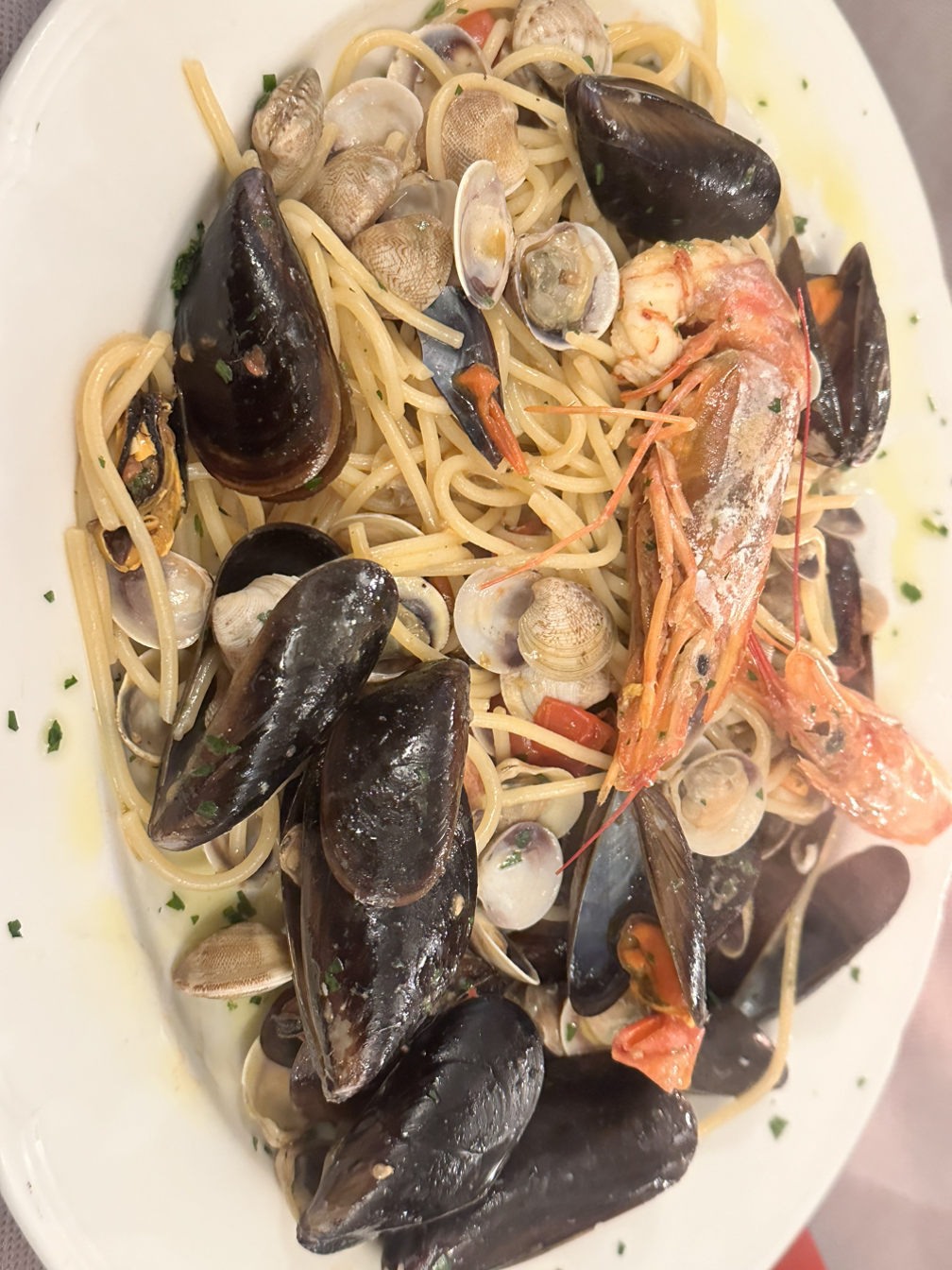 만족스러운 마트 구경을 마치고 저녁을 먹으러 갔다. 드디어 베네치아의 메인 목적인 해산물 파스타를 먹으러 갔다. 사실 한국인 맛집을 그렇게 좋아하지는 않지만, 후기에 인생 해산물 파스타라는 한국인 분들의 후기가 많아서 기대를 잔뜩 가지고 갔다. 들어가서 주문을 하고 잠시 기다리니 조개로 가득한 파스타가 나왔다. 후기대로 감칠맛도 엄청나고 고소하면서 간도 적당하고 맛있었다. 근데 모든 조개에서 모래가 씹혔다. 여기는 해감 과정을 안 거치고 모래도 같이 먹는 건가 싶을 정도로 모래가 씹혔고, 조개를 먹지 않고 파스타만 집어 먹어도 모래가 씹혔다. 맛있었지만 충수염이 1년 정도 앞당겨지는 모래 양이었다.