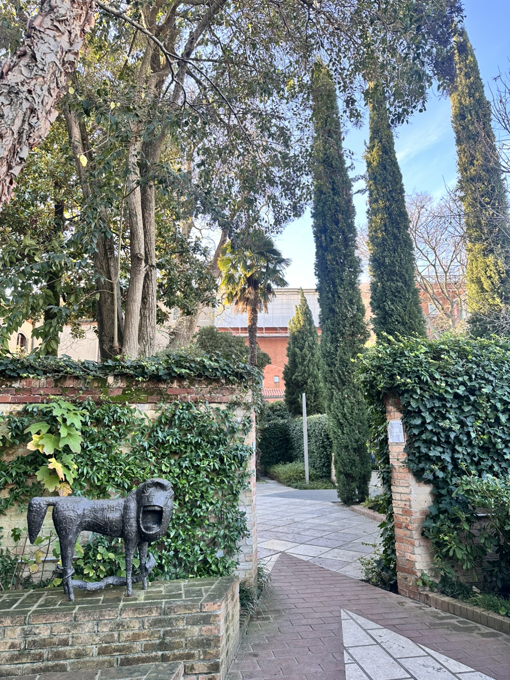다음으로 향한 곳은 페기 구겐하임 미술관이다. 아카데미아 미술관과 구겐하임 미술관 중에 고민하다가 구겐하임 미술관이 조금 더 특색 있어 보여서 구겐하임 미술관으로 향했다. 학생할인을 받아 9유로에 티켓을 사고 입장했다. 들어가자마자 단순히 미술 작품 전시를 넘어 하나의 고유한 공간이라는 느낌을 받았다. 바깥 베네치아 풍경과 독립적인, 새로운 세계가 펼쳐지는 느낌이었다. 전체적으로 초록초록하고 앤틱하면서 신비롭고 고요한 느낌이 있어서 구겐하임 세상처럼 느껴졌다.