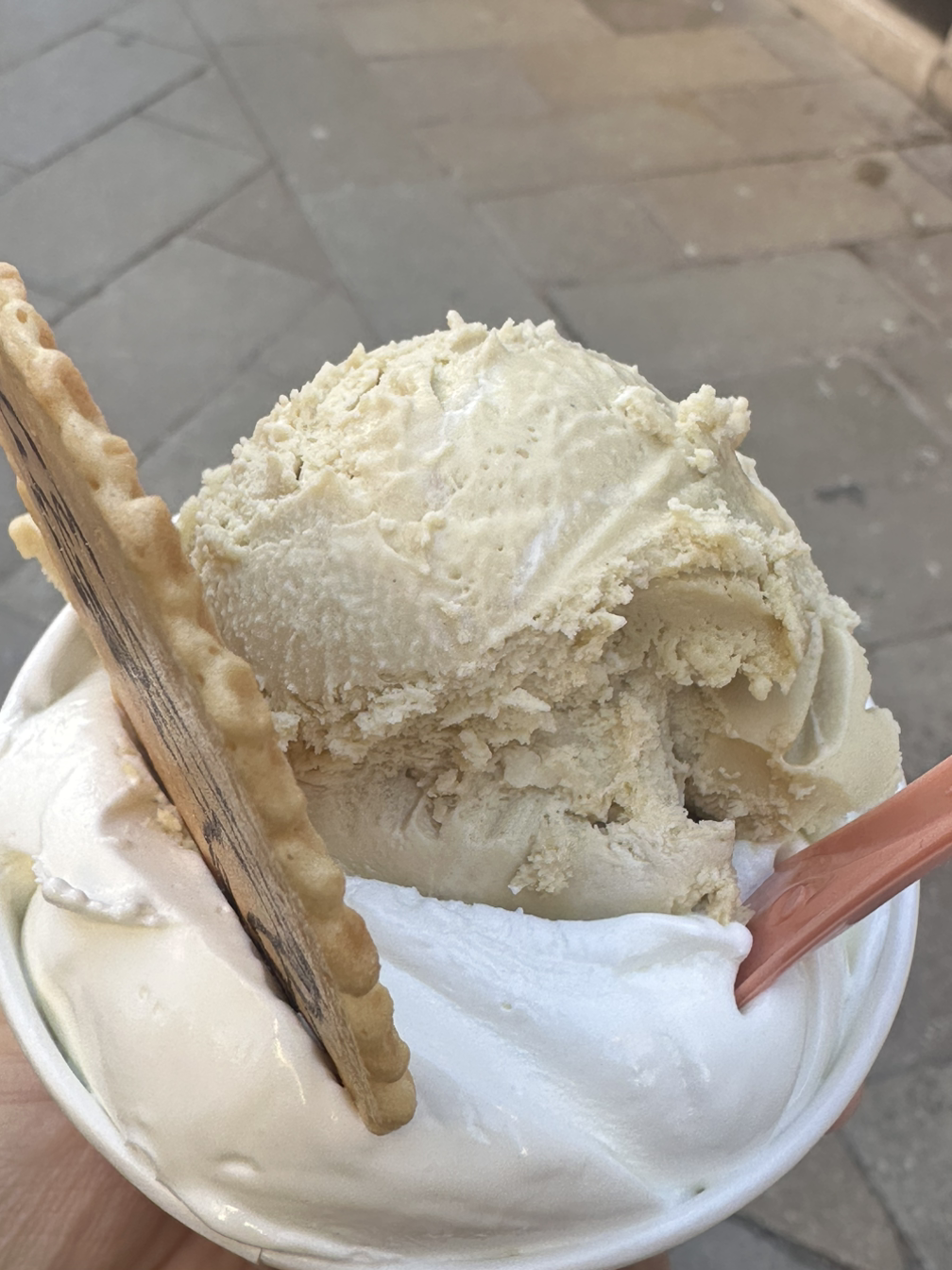 다음으로는 걸어가다가 저장해 둔 젤라또 가게가 있어서 피스타치오와 요거트맛을 주문했다. 5.5유로로 비쌌지만.. 꾸덕하고 맛있었다. 내가 기대한 젤라또 특유의 쫀득함은 없었지만 묵직하고 꾸덕하고 요거트와 피스타치오 맛도 진해서 맛있게 먹었다. 사실 엄마랑 전화를 하기 시작했는데, 전화를 거의 1시간을 해서 걸어 다니면서 먹으면서 전화하느라 약간 정신없었다.