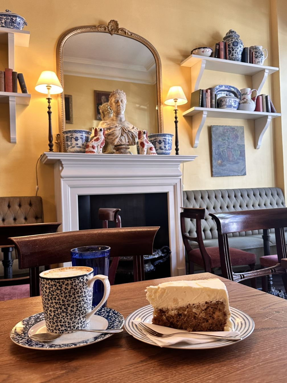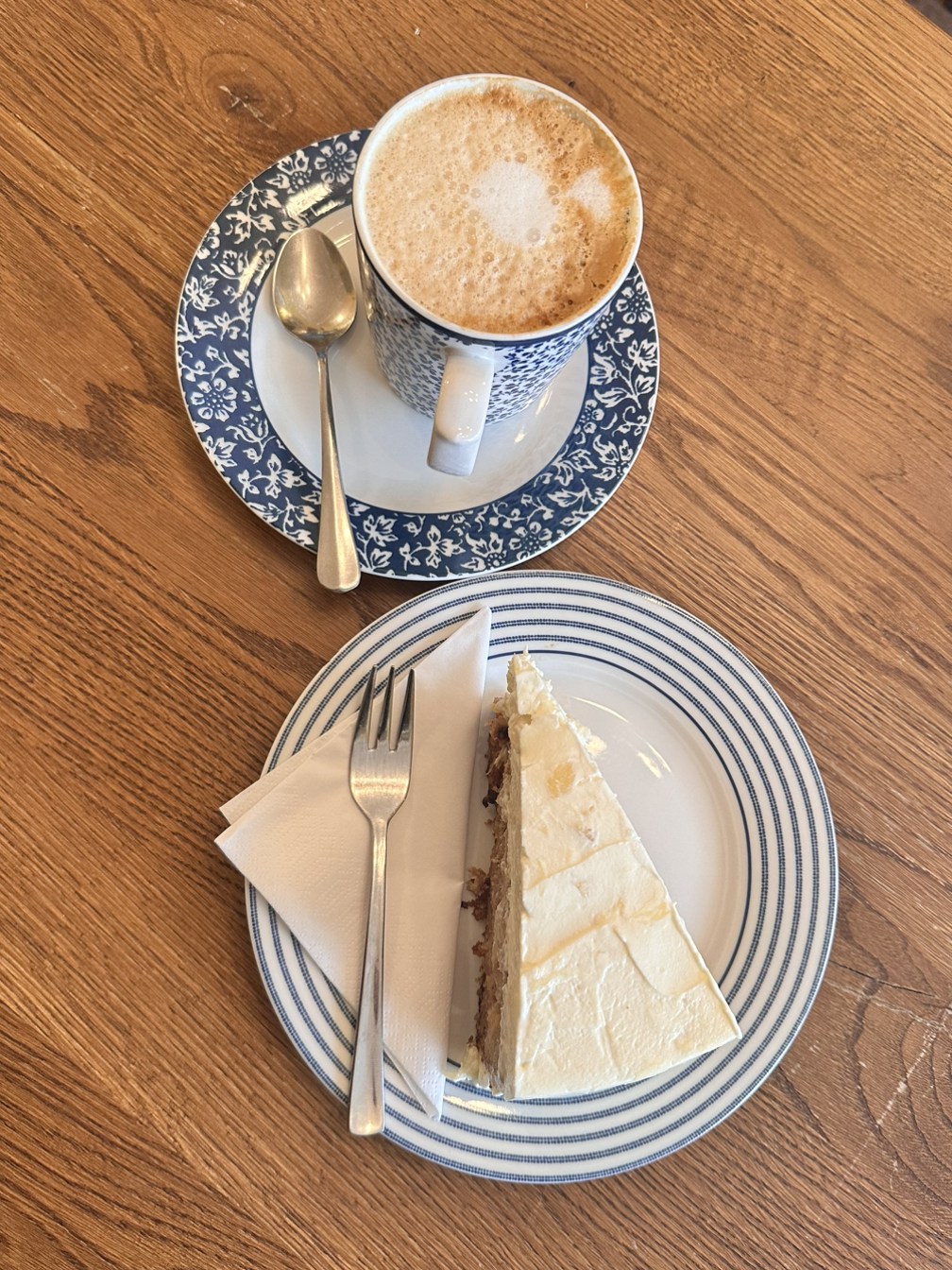 다음 코스는 Tea와 케이크를 파는 카페! 어제 미술관으로 걸어가면서 본 카페인데, 케이크 리뷰가 너무 좋아서 오지 않을 수 없었다. Tea house였지만 졸려서 카푸치노를 주문하고, 하나같이 맛있어 보였던 케이크 진열장에서 당근 파인애플 케이크도 주문했다. 비교적 이른 시간이라 그런지 케이크 진열장에 케이크가 거의 꽉 채워져 있었는데, 종류도 많고 다 맛있어 보였다. 사람도 많지 않고 주인 분도 스윗하셨다. 케이크와 커피, 그리고 물 한 잔도 같이 주셨는데 손이 2개라서 못 들고 가니까 카운터에서 빙 돌아 나와서 물을 테이블까지 가져다주셨다! 자리에 앉아서 먹어본 케이크는 감동이었다. 파인애플도 통으로 큼직하게 들어가 있고, 당근도 적당한 크기로 들어가 있고 건포도로 추정되는 베리의 달달함과 호두의 고소함이 잘 어울렸다. 크림치즈가 두꺼운 편이었는데 파인애플이 들어가서 그런지 느끼하지 않게 먹을 수 있어서 좋았다. 여기 아무래도 또 다른 최애 카페가 될 것 같다. 모든 케이크를 도장 깨기하고 싶은 맛! 여기서도 여유롭게 책도 읽고 엄마랑 전화도 하고 그랬다. 카페에 있는데 갑자기 엄마랑 전화를 하게 되어서 거의 ASMR로 전화를 했다. 유선이어폰이 있어서 ASMR 유튜버 분들처럼 입에 대고 소곤소곤 전화를 했다. 주된 내용은 여행 계획 세우기! 엄마가 11월 말에 놀러 오기로 해서 어디에 갈지를 얘기해 봤다. 책도 마저 읽다가 슬 루즈해져서 공원으로 향했다.