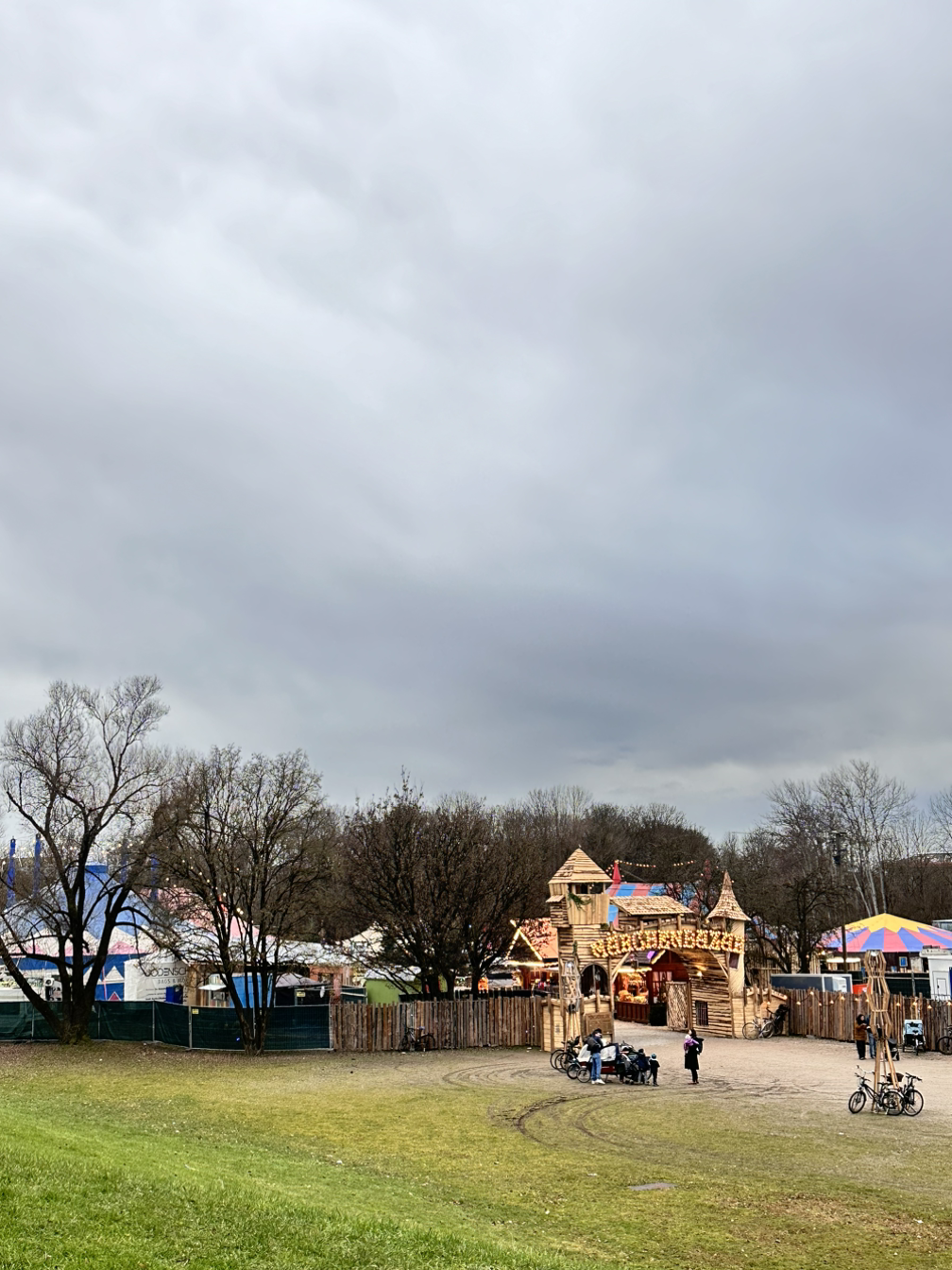 사실 오늘의 코스에는 조금 거리가 있는 소세지집에 가서 커리부어스트를 먹는 것까지 있었지만, 배가 너무 불러서 패스하고 공원 산책을 하러 갔다. 올림픽 공원 쪽으로 40분 정도를 걸어가서 공원 안에 있는 크리스마스 마켓으로 향했다. 와플이랑 소세지, 감자튀김과 와인 등 뭔가 있을 건 있는데 공원 크기에 비해 규모가 작아서인지 주변 나무들이 가지만 남아서인지 황량한 분위기라서 한 바퀴 구경을 하고 나왔다.