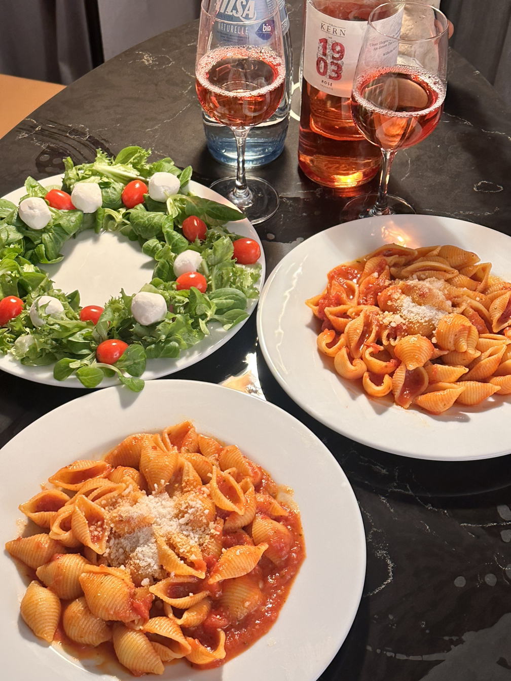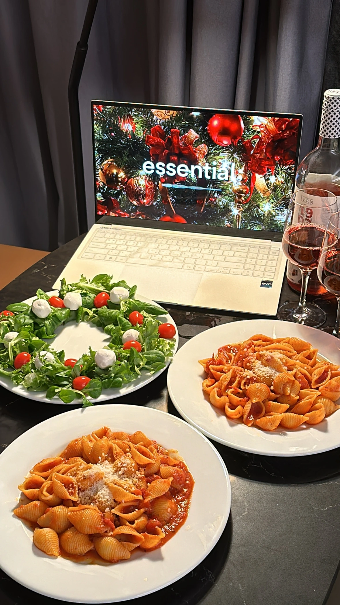 맛은 생각보다도 더 맛있었다. 파스타는 살짝 매콤하고 치즈의 풍미가 느껴져 맛있었고 샐러드는 치즈는 별로였지만 방울토마토와 먹으니 맛있었다. 친구랑 만들어 먹으니 더 맛있게 느껴졌다. 시작 전에 2시간 52분짜리 크리스마스 플레이리스트를 틀어놨는데, 2시간 52분 내내 수다를 떨면서 맛있게 만들고 먹었다.