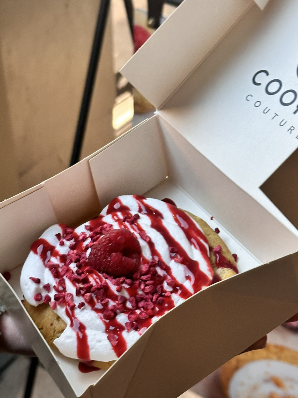 그러고 길을 걷다가 우연히 사람이 많은 쿠키집을 발견했다. 냄새도 좋고 우리도 쿠키를 좋아해 긴 줄에 합류했다. 하나에 4.9유로나 하는.. 꽤나 비싼 쿠키라서 둘이 하나만 사서 나눠 먹기로 했다.