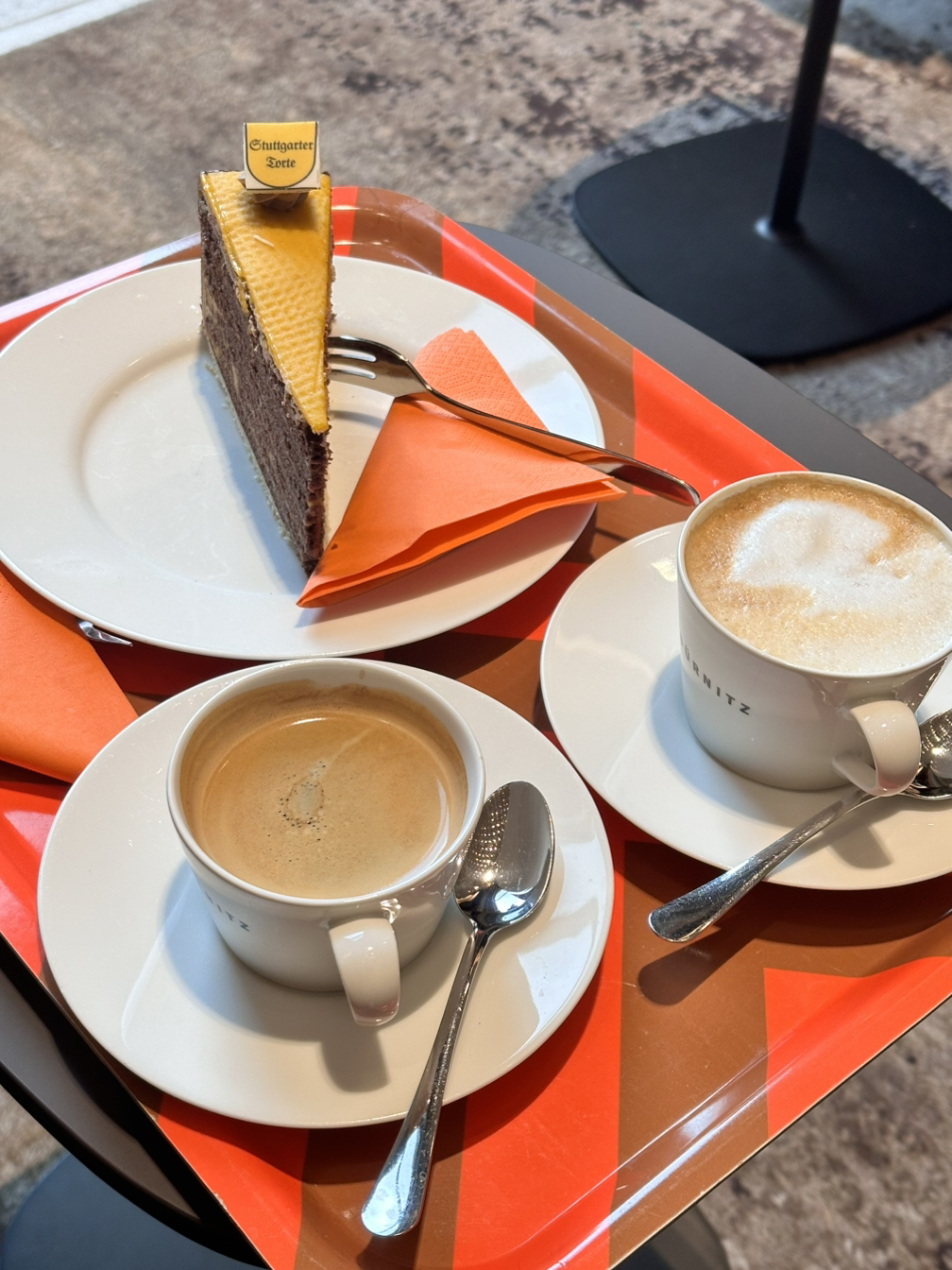밥을 먹고 쇼핑을 했으니 카페로 향했다. 분위기가 좋아 보여서 저장해 놓은 카페였는데, 알고 보니 미술관 안에 있는 카페였다. 규모가 큰데 미술관답게 감각적인 인테리어와 미술관 특유의 평화로운 분위기가 좋았다. 카푸치노와 커피, 그리고 슈투트가르트 케이크가 있길래 주문해 봤다. 슈투트가르트 케이크는 그냥 그랬지만 커피는 맛있어서 또 한참을 신나게 수다 떨었다.