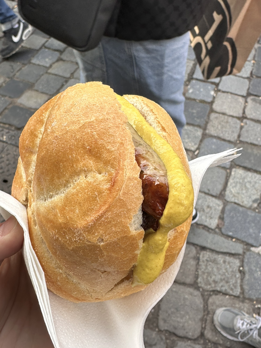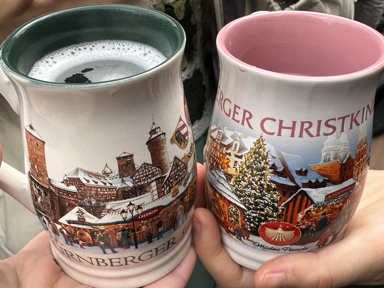 시작은 짐 보관이었다. 캐리어와 가방을 넣고 싶었는데 동전이 없어 마트에서 바꿔오느라 한참이 걸렸다. 그래도 무사히 바꿔와서는 캐리어를 넣어놓고 크리스마스 마켓으로 향했다. 유럽의 3대 크리스미스 마켓 중 하나라고 유명한 뉘른베르크 크리스마스 마켓인데, 그래서인지 사람이 정말 많았다. 사람에 휩쓸려간다는 게 이해가 갈 정도로 사람으로 빼곡했다. 마켓을 한 바퀴 돌아보니 점심시간이 되어 소세지를 사 먹었다. 이 지역에서 유명한 뉘른베르크 소세지였는데, 다른 소세지보다 작은 손가락 1개 반 정도 크기의 소세지를 3개씩 넣어주는 핫도그를 사 먹었다. 고기 맛도 많이 나고 감칠맛이 좋은 맛있는 소세지였다. 특히 머스타드만 뿌려 먹으니 소세지의 감칠맛과 빵의 투박한 맛, 그리고 머스타드의 깔끔한데 매콤한 맛끼지 어우러져 맛있었다. 친구들이 글루바인을 마시고 싶다고 해 글루바인도 마시고 기차까지 시간이 님아 마트 구경을 했다. 마트에 이어 디엠까지 구경하고 뭐를 할까 하다가 근처 카페로 갔다. 카페에서 수다를 떨다가 기차 시간에 맞춰 역으로 와 저녁으로 먹을 샌드위치를 사고, 짐을 찾고 기차에 올라탔다.