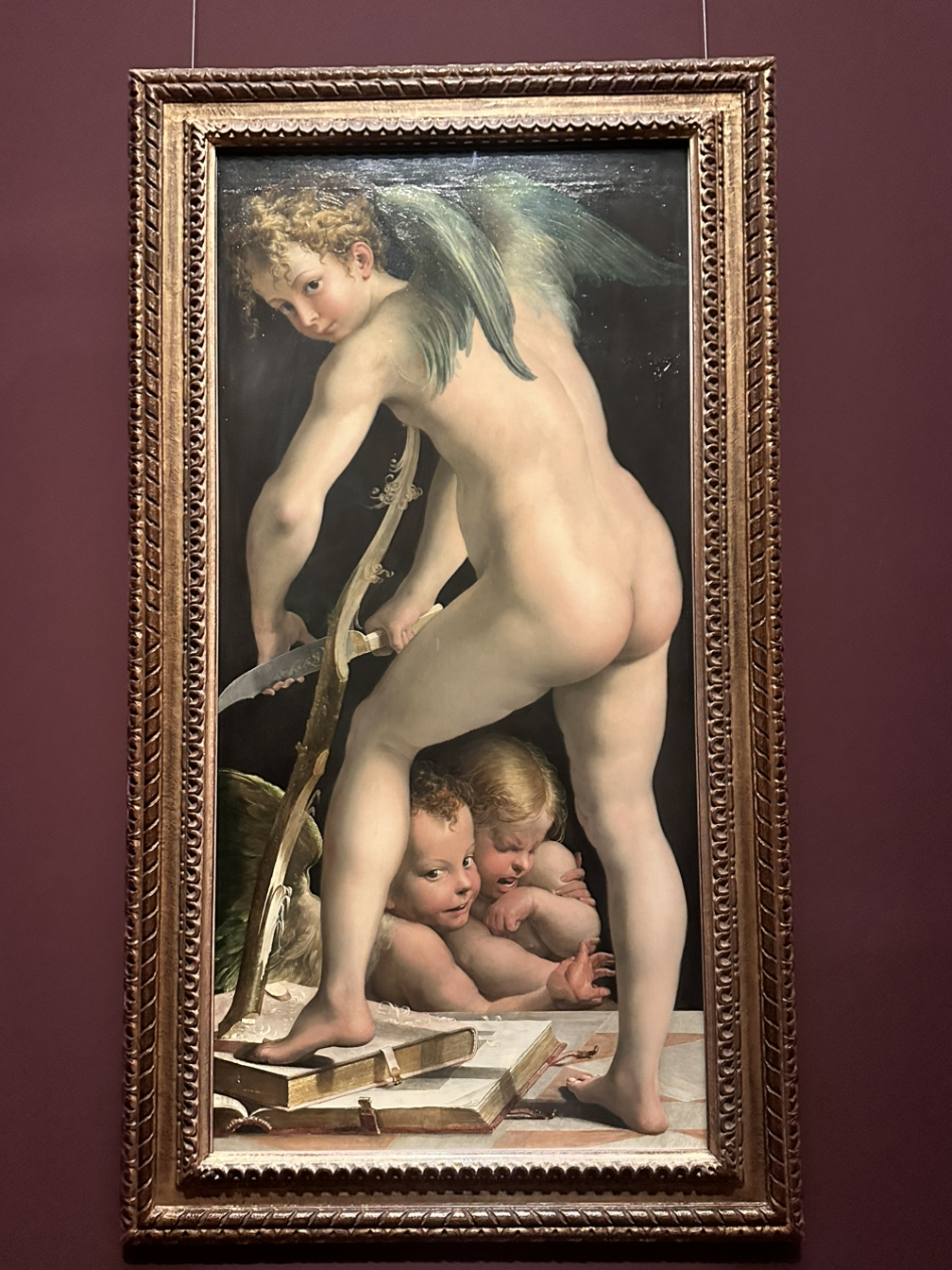 오늘 미술 작품을 보면서 든 생각은, 미술 작품은 지극히 개인적이고 주관적인 하나의 ‘추억’이라는 생각이 들었다. 여기서 가장 좋았던 미술 작품을 물어보면, 나는 이 작품을 고를 것 같다. Francesco Mazzola gen. Parmigianino라는 작가의 Bow carving amor라는 작품이다. 이 작품이 처음 인상 깊었던 이유는, 다리 밑에 있는 아이들의 해맑은 웃음과 괴롭히지 말라는 듯한 표정 때문이었다. 그래서 두 아이만 크롭 해서 언니에게 보내며 ‘나 그만 괴롭혀’라고 장난을 쳤다. 바쁜 언니가 보면서 미소라도 지을까 해서 보냈는데, 역시나 ㅋㅋ라고 보내주는 언니의 답장 덕분에 이 그림에 얽힌 하나의 추억이 생겼다. 그래서 이 작가도 모르고 제목도 찾아봐야 아는 그림이 특별해진 것이다. 미. 알. 못인 내가 조금 더 예술적으로 접근하면, 생동감 넘치는 표정에 매료되었다고 해야 할까. 물론 다른 작품들도 작품 그 자체로 좋은 것도, 마음에 들어오는 것도 있지만 가끔 이렇게 조그마한 추억도 작품을 특별하게 만들어주는 것 같다.