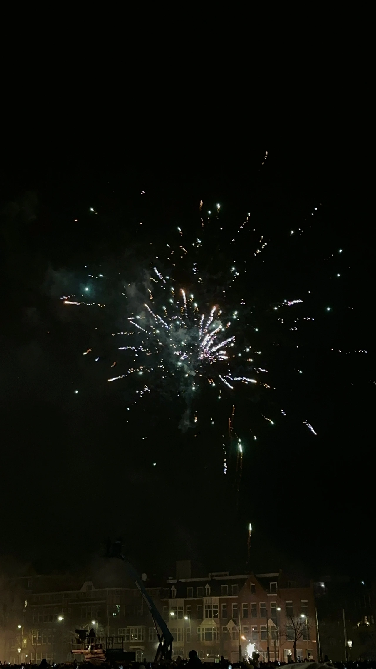 그러다 12시가 되기 30분 전에 새해 카운트다운을 보러 근처 광장으로 향했다. 암스테르담에서 가장 큰 카운트다운 행사라고 하던데, 호텔에서 걸어서 5분 거리에 있어서 갈 수 있었다. 호텔을 나서자마자 꽤나 많은 사람이 있었고, 저녁을 먹을 때부터 쉬지 않고 들리던 폭죽 소리도 더 크게 들렸다. 새해 20분쯤 전에 자리를 잡고 구경하기 시작했는데, 카운트다운을 보고 있어서 그런지 시간이 빨리 갔다. 올해에 대한 아쉬움도 행복했던 추억도 내년에 대한 기대도 생기면서 복합적인 감정이 들었다. 그리고 주로 집에서 호텔에서 보다가 밖에서 직접 보는 건 처음이었는데, 들뜬 사람들이랑 함께하니 나도 더 신나서 좋았다. 잠시 기다렸더니 금방 12시가 되었고, 온갖 폭죽이 사방에서 터지기 시작했다. 20분 동안 쉴 틈 없이 터졌고, 돌아갈 때도 계속 터졌다. 노래도 빵빵하게 틀고 폭죽도 터지니 정말 축제 같았다. 덕분에 2025년을 힘차게 시작할 수 있었다. 20분 정도 보니 피곤해져서 귀가했다.