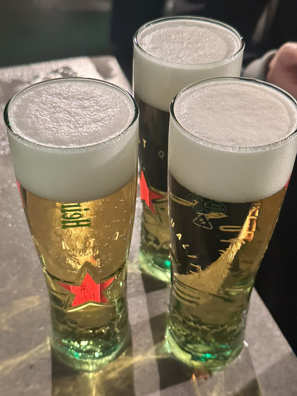 전시회를 보고는 기념품 가게도 갔다가 하이네켄 박물관으로 갔다. 하이네켄은 한국에서도 마셔본 적이 없는 것 같아서 기대가 되었다. 사람이 꽤나 많아서 예약을 했는데도 기다려야 했다. 그렇게 30분 정도 기다려 만들어지는 과정에 대한 설명도 듣고, 맥주의 1인칭 관점에서 영상으로 보기도 했다. 맥주의 관점이라니 신선했다. 그리고 영상이 굉장히 감각적이었다. 맥주 1인칭 영상을 보고 나오니 귀여운 150ml 잔에 맥주를 주셨다. 다 같이 짠하고 마시고 조금 더 구경하다가 본격 시음 코너로 들어왔다. 250ml 정도 되는 것 같은 맥주 2잔을 받았다. 시원하고 청량했지만, 독일의 맥주가 조금 더 깔끔해서 맛있었던 것 같다. 과일의 향과 신선한 느낌이 강해서 맛있었다. 작은 잔이지만 3잔을 마시니 꽤나 취했다. 텐션이 올라간 상태로 친구들이랑 호텔로 귀가했다. 오후부터 비가 내리고 바람이 너무 많이 불어서 야긴기차를 타러 가기 전에 샤워를 하고 가기로 했다. 샤워를 하고 친구들은 미술관이 하나 남아서 보러 가고 나는 짐을 챙겨 기차역으로 향했다.