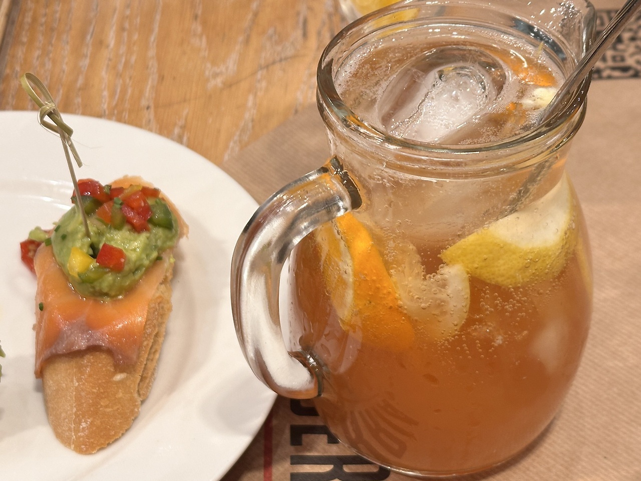 걸어 다니다가 가볍게 술 한잔을 하자고 해서 사람이 많아 보이는 가게로 들어갔다. 스페인식 에피타이저 같은 핀초라는 음식이 있었다. 바게트 위에 다양한 재료가 올라가 있는 형태로 전에 베네치아에서 먹은 음식과 비슷했다. 아보카도부터 연어, 치킨, 게살, 생선구이 등 다양한 종류가 있었고 접시를 들고 골라오는 형태였다. 신기하게도 회전초밥처럼 꼬치의 모양을 보고 나중에 결제하는 방식이었다. 우리는 Cava라는 스페인식 스파클링 와인이 들어간 샹그리아와 맥주 한 잔, 아보카도 핀초, 아보카도+연어 핀초 그리고 대구 구이가 올라간 핀초를 담았다. 샹그리아는 달달하고 오렌지의 향과 맛이 진하게 났다. 그리고 원래 알던 샹그리아와 다르게 탄산감이 느껴졌다. 핀초는 예상 가능한 맛이었지만 대구 핀초는 정말 맛있었다. 따뜻하고 부드럽고 짭조름해서 안주로도 잘 어울렸다. 그렇게 짧은 술자리를 가지고 다시 집으로 걸어왔다. 돌아와서는 다들 피곤했는지 씻고 바로 잠에 들었다. 나도 최근에 잠을 잘 못 자서 일찍 잠에 들려고 한다.