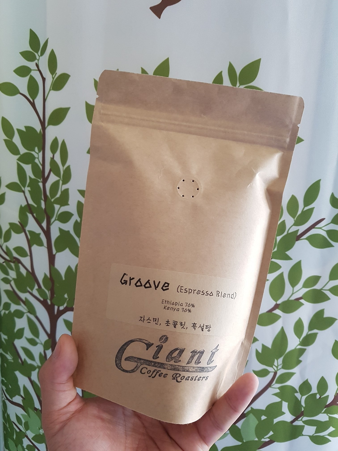 경기도 안산시에 위치한 자이언트 커피 로스터스. 현재 매장은 운영하지 않고 있으며, 원두 납품을 주력으로 로스팅을 하는 소규모 로스터리. 경기도 안산의 103 COFFEE ROOM, 경주의 NO WORDS, 제주의 BREW MARVEL에 납품 중인 작지만 실력 있는 로스터리. 정기적으로 퍼블릭 커핑을 통해 그들의 커피를 함께 즐기려는 모습이 인상적이며, 이미 몇 년 전부터 홈바리스타들 사이에서 소문이 많이 났었었으며, 필자 역시 몇 년 전 구매를 즐긴 적이 있었다. 그때의 기억엔 밸런스가 괜찮았으며, 먹기 편했던 기억이 있다. 블랜드 중 하나인 GROOVE를 만나보기로 한다.