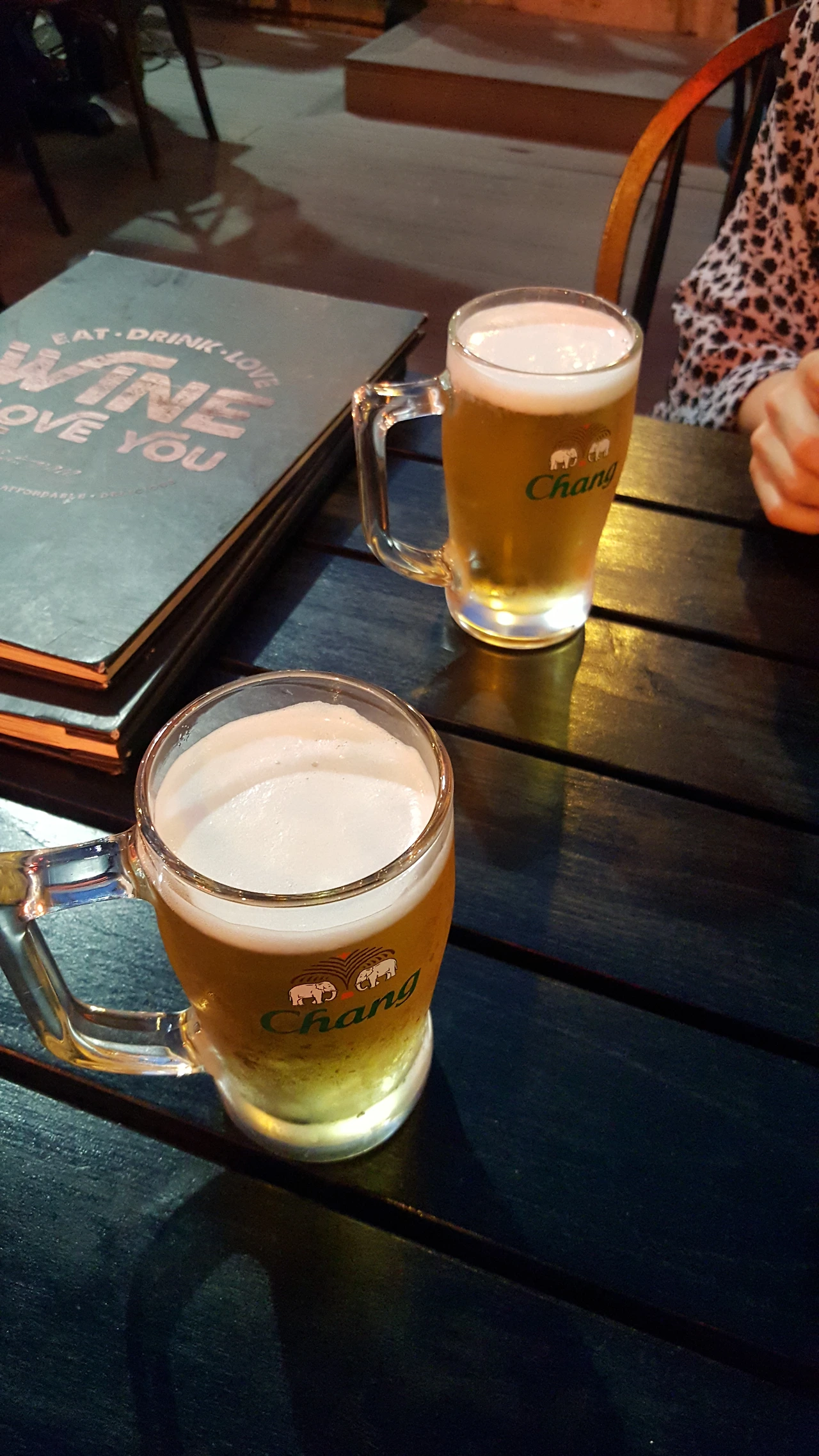 더위도 더위였지만, 옆 테이블에서 험담하는 사람들 때문에 기분이 나빠서 오래 머무를 수 없었던 우리는 다시 방콕으로 돌아가기 위해, 여행자들의 천국이라는 카오산로드를 구경하기로 하고 다시 Grab을 불렀다. 똑같은 행선지에, 똑같은 음식을 먹고, 똑같은 경험을 해야 하는 여행이 질려 있었던 나는 나름대로 절대로 이것만은 하지 않겠다는 것은 하나 있었다. 유명한 햄버거집 앞에 서있는 햄버거 아저씨 , 로날드 동상 옆에서 사진을 찍는 것. 이름도 '로날드'인 주제에 태국이라고 합장을 하고 인사를 하고 있는 아저씨는 그냥 눈으로 담아두기에도 충분했다. 역시나 삶아지는 듯한 더위 때문에 오래 걷지 못했다. 지나가다가 더위를 식혀보고자 들른 맥주집에서 얼음을 가재 수건 한가득 담아 목에 두르고 선풍기 앞에 앉아 타이식 샐러드를 입에 우겨넣어도 한 시간 이상 머무르기에는 역부족이었다.