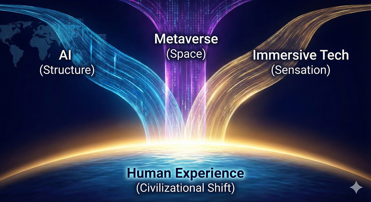 역사적으로 살아있는 문명은 언제나 구조(AI)와 공간(Metaverse), 그리고 감각(Immersive)을 하나로 통합해왔다. 만약 이 기술들이 서로 연결되지 못하고 파편화된 채로 남는다면 우리는 스마트한 기계들에 둘러싸인 채 고립되는 '죽은 문명'을 맞이하게 될 것이다.
