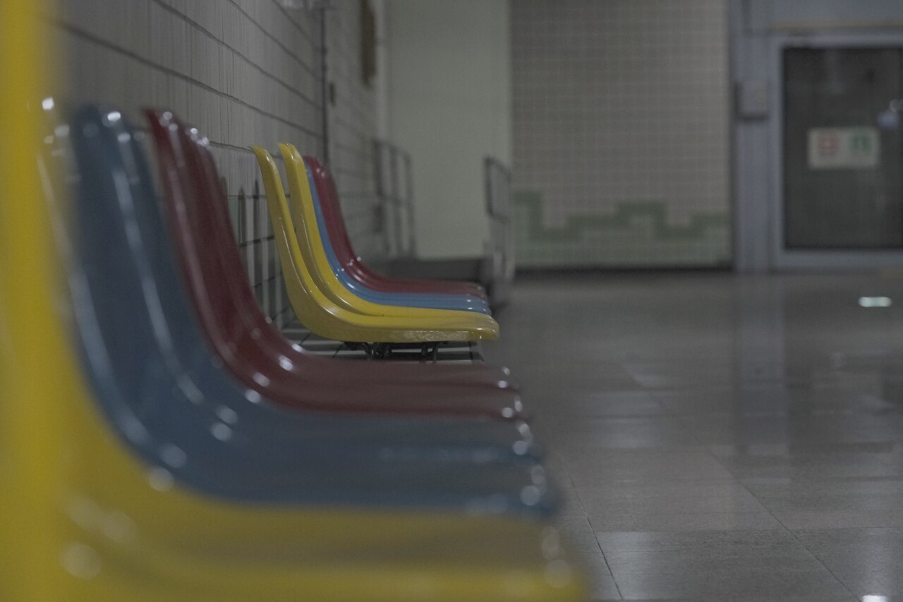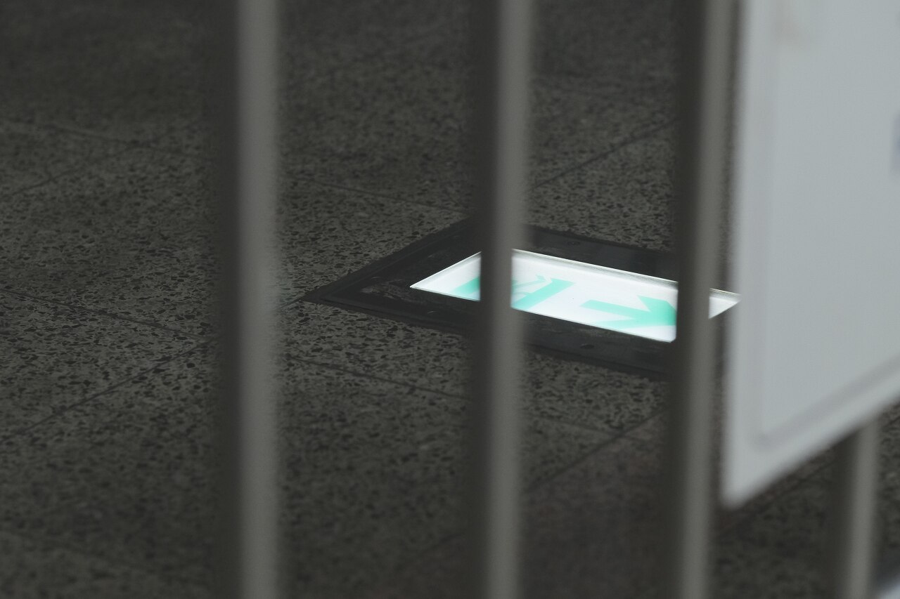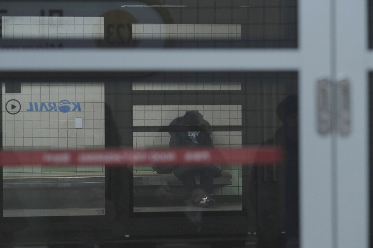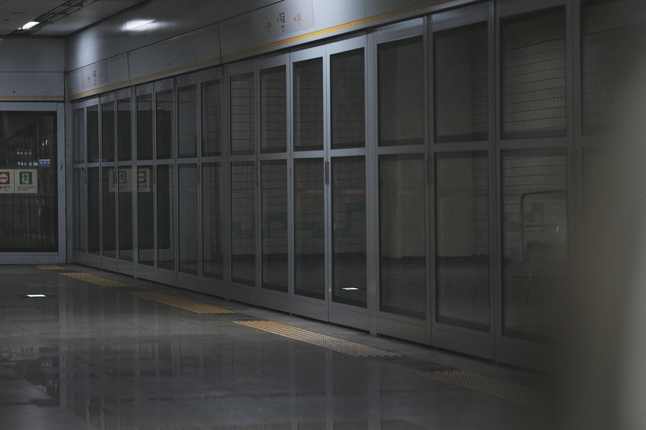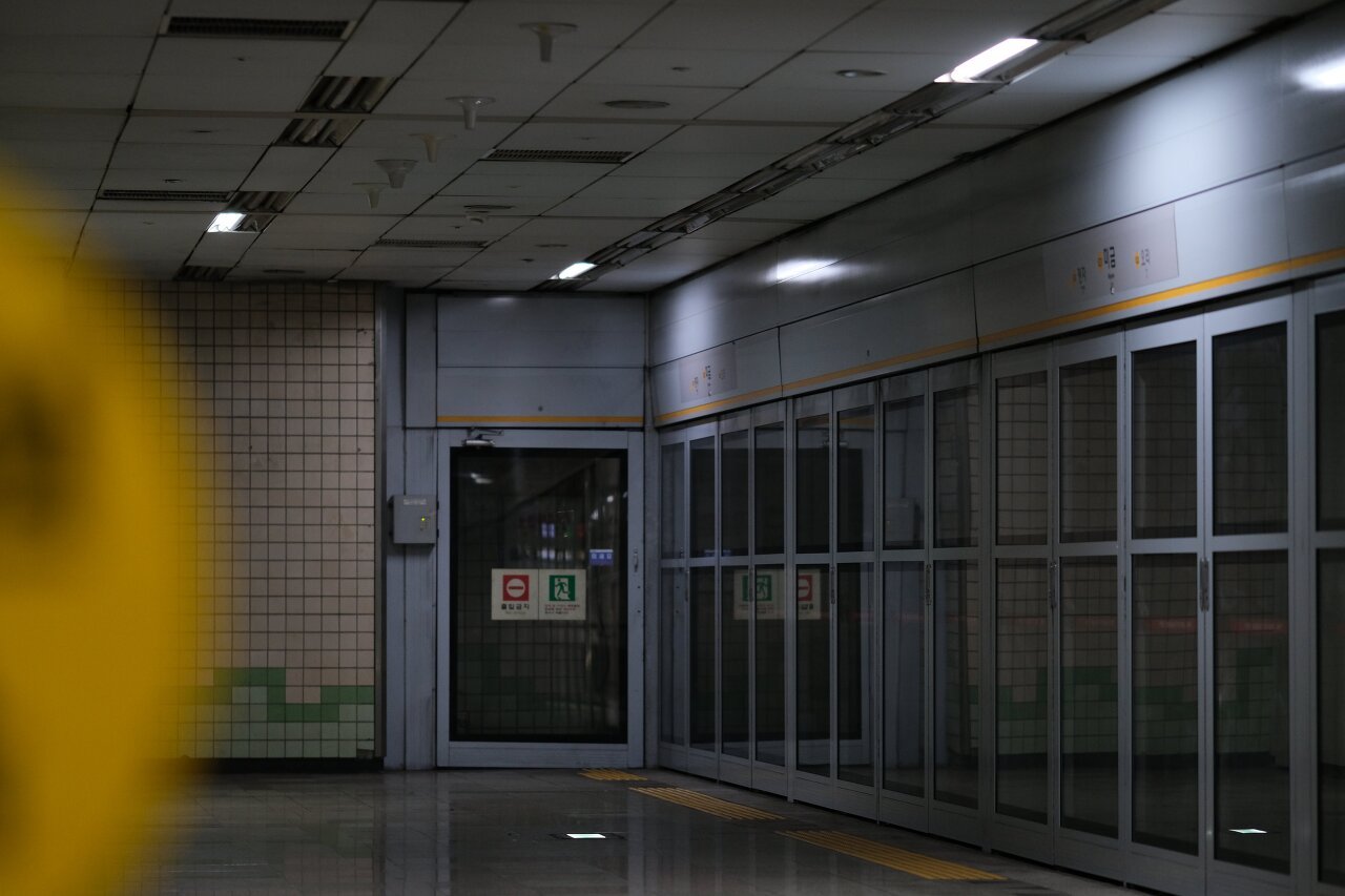지하철역 안의 승강장과지하철역 밖의 밤 풍경