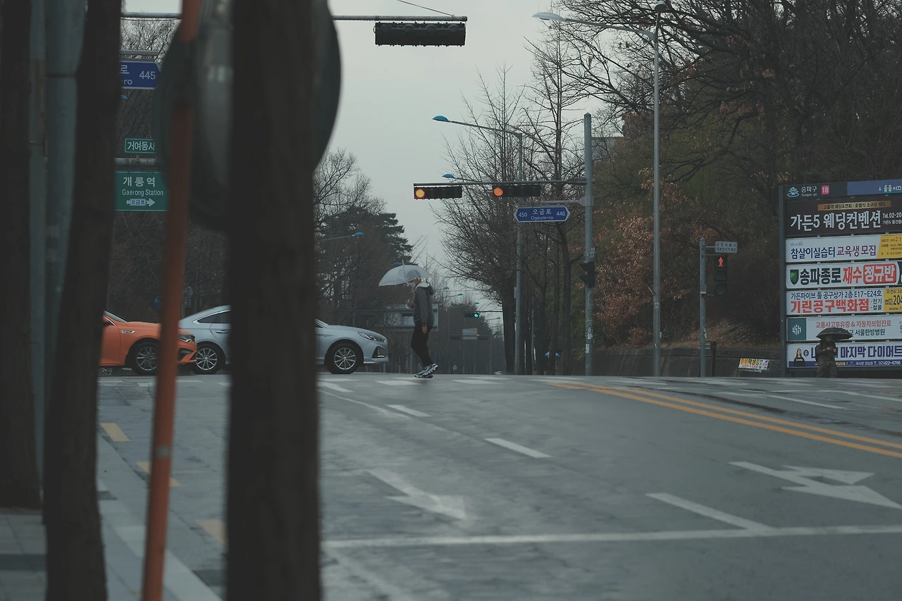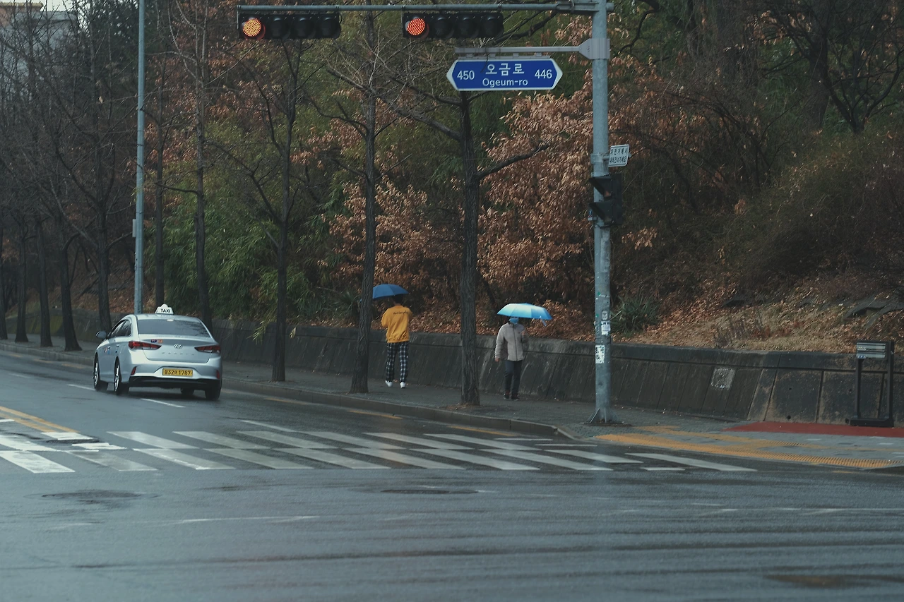 우산을 쓰자니 비가 내리지 않는 것 같고우산을 안 쓰자니 비를 맞는 것 같은 날씨그래도 우산을 가지고 나왔으니 쓰자고 생각하는 날씨이런 어중간한 날씨 이런 날씨의 거리는 어떤 느낌일까...???