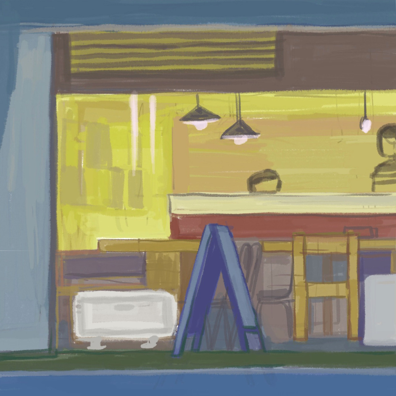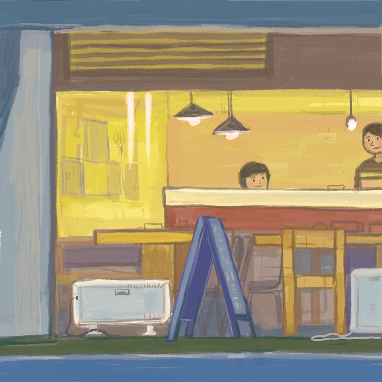 카페 내부를 들어가 본 적이 없이 사진을 통해서만 그리는 것이라서 구조상 정확하게 어떻게 생겼는지에 대한 정보가 부족한 상태로 그림을 그려서 뭔가 어색한 점이 생겼다.