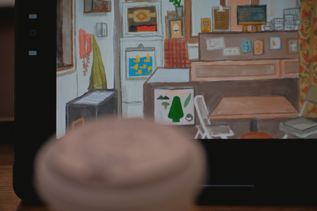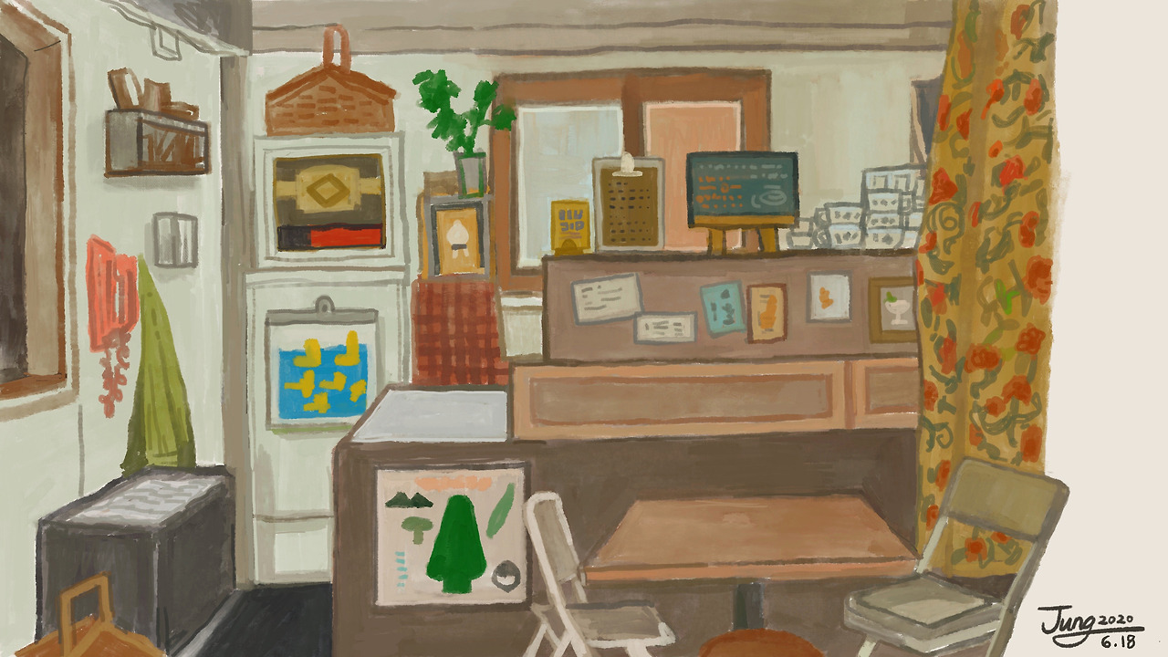 카페 내부 모습을 그려보았다.아기자기한 느낌의 카페 인테리어...그림에서도 그 아기자기한 느낌을 표현하는데 중점을 두었다...ㅎ