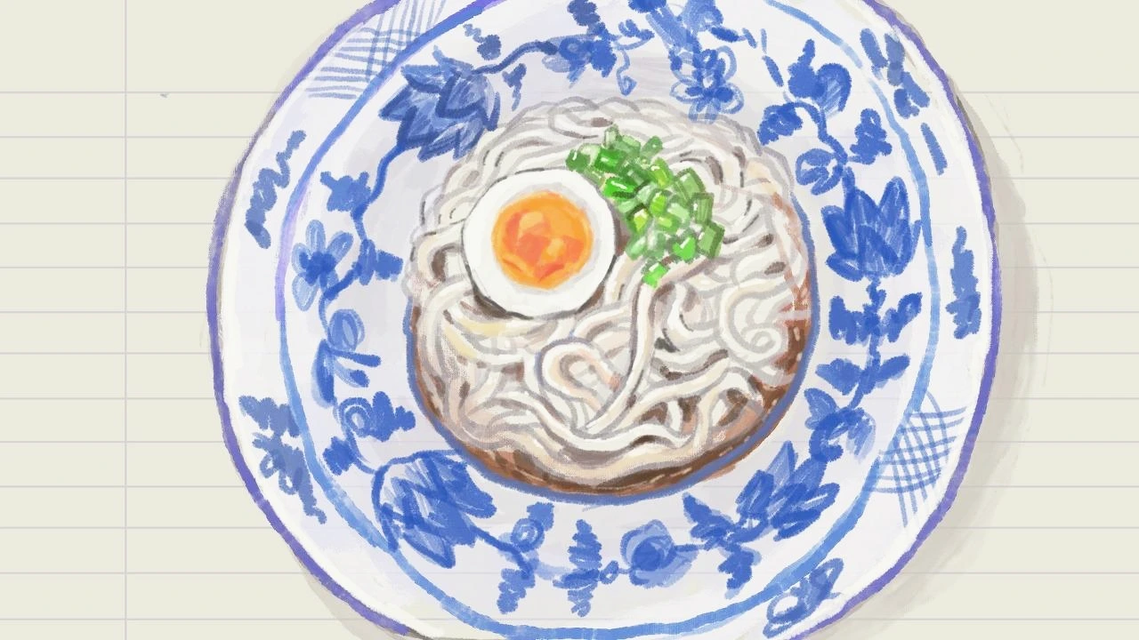 잡지책을 보다가음식에 대한 이야기와 함께 여름국수가 나왔다.사진으로만 본 여름국수 그래도 맛있어 보였다. 여름국수를 담은대접 멋있어서 그림으로 그려보았다.