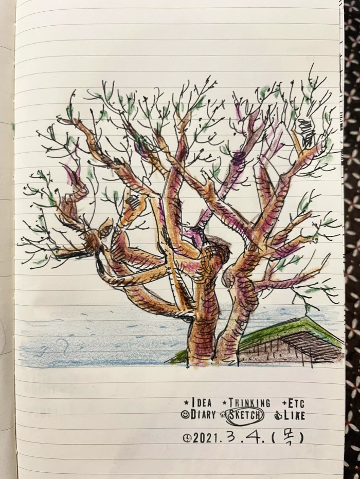 긴 겨울을 지나 화려하게 변신하려는 봄 나무의 모습봄을 시작으로 일년을 잘 보냈으면 싶은 마음에 그림을 그려본다.